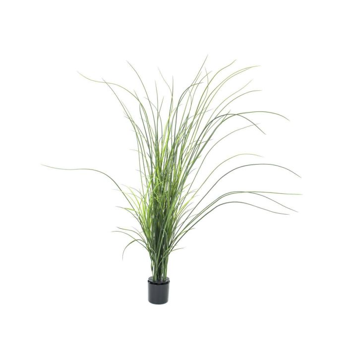 Ce faux roseau mesurant au total environ 145 cm de hauteur est placé dans un pot en plastique noir.