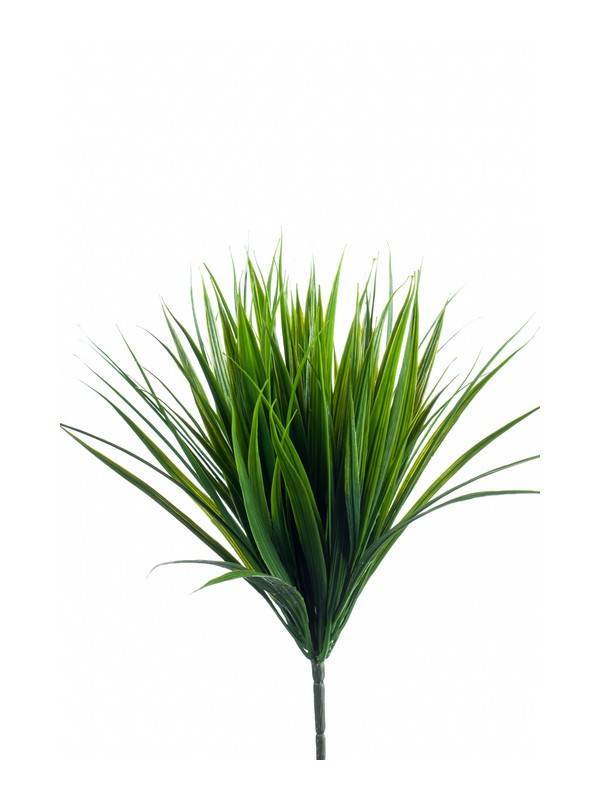 La touffe d’herbe artificielle sur une tige se compose de nombreux brins d’herbe vert foncé a vert clair. L’herbe artificielle a une hauteur totale d’env. 35 cm.