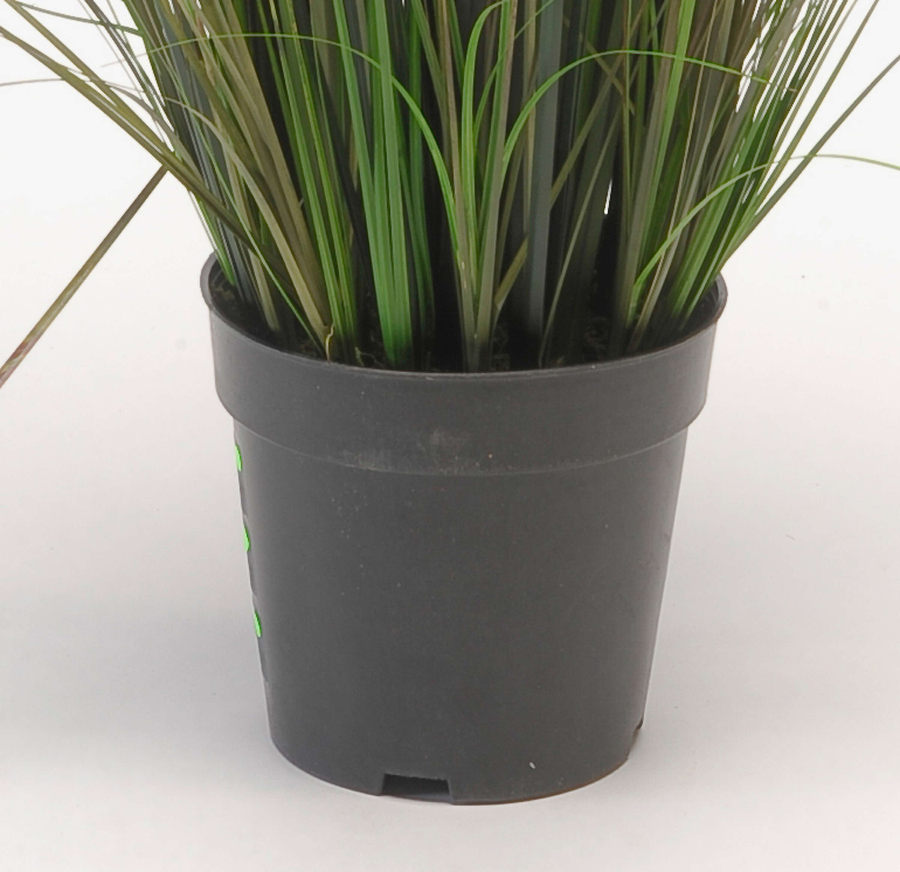 - Dans un petit pot en matière plastique noire, hauteur du pot env. 13 cm, diamètre inférieur 10,5 cm, supérieur 14 cm, avec de la terre artificielle légèrement recouverte de mousse