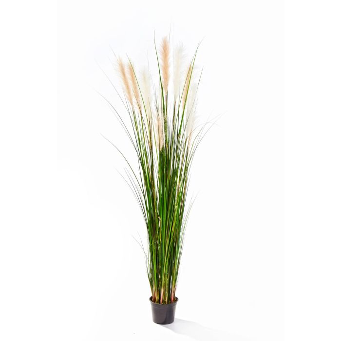 Ce roseau de type Calamagrostis commun artificiel KILIAN pour tout le monde se caractérise par de nombreux brins d'herbe fins verts avec ses épis beiges fins. La graminée artificielle mesure au total environ 180 cm de haut.