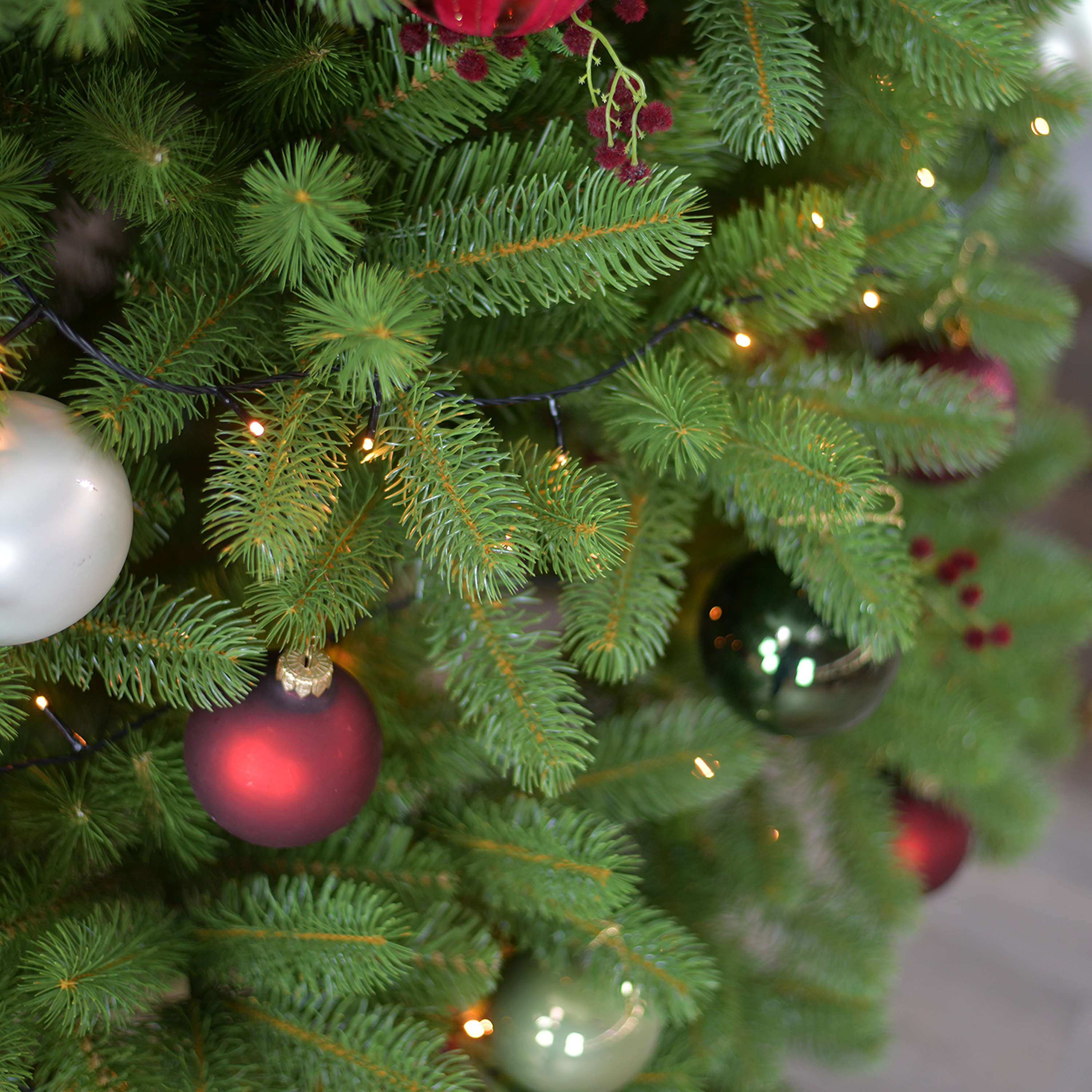 - Environ 700 extrémités de couleur vert foncé, mélange de matériel PE / PVC, fixation solide des branches par des charnières. Aiguilles PE env. 2,5 cm de long et aiguilles PVC env. 4 cm de long