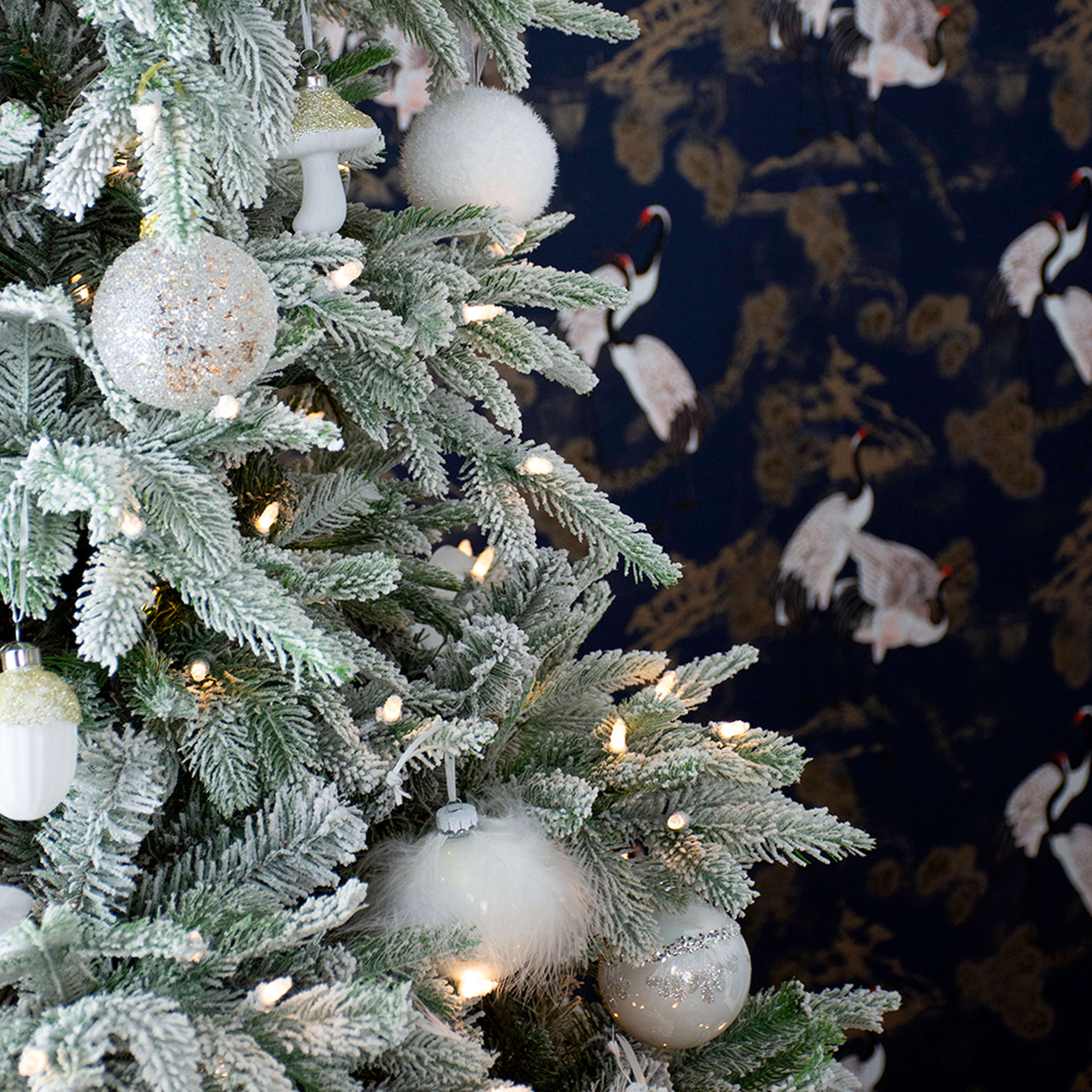 - Pourvu de branches de conifères souples en blanc en matière PE/PVC