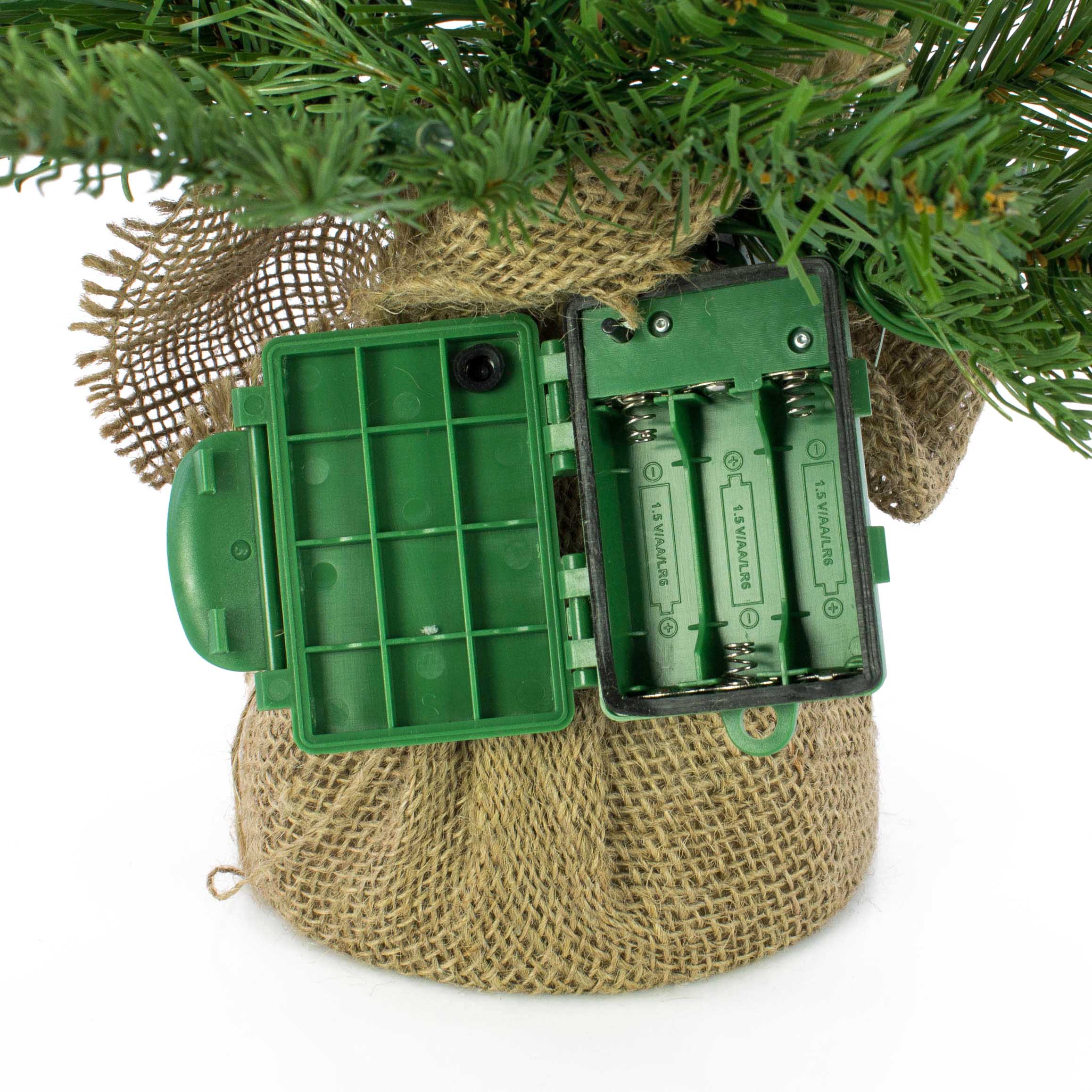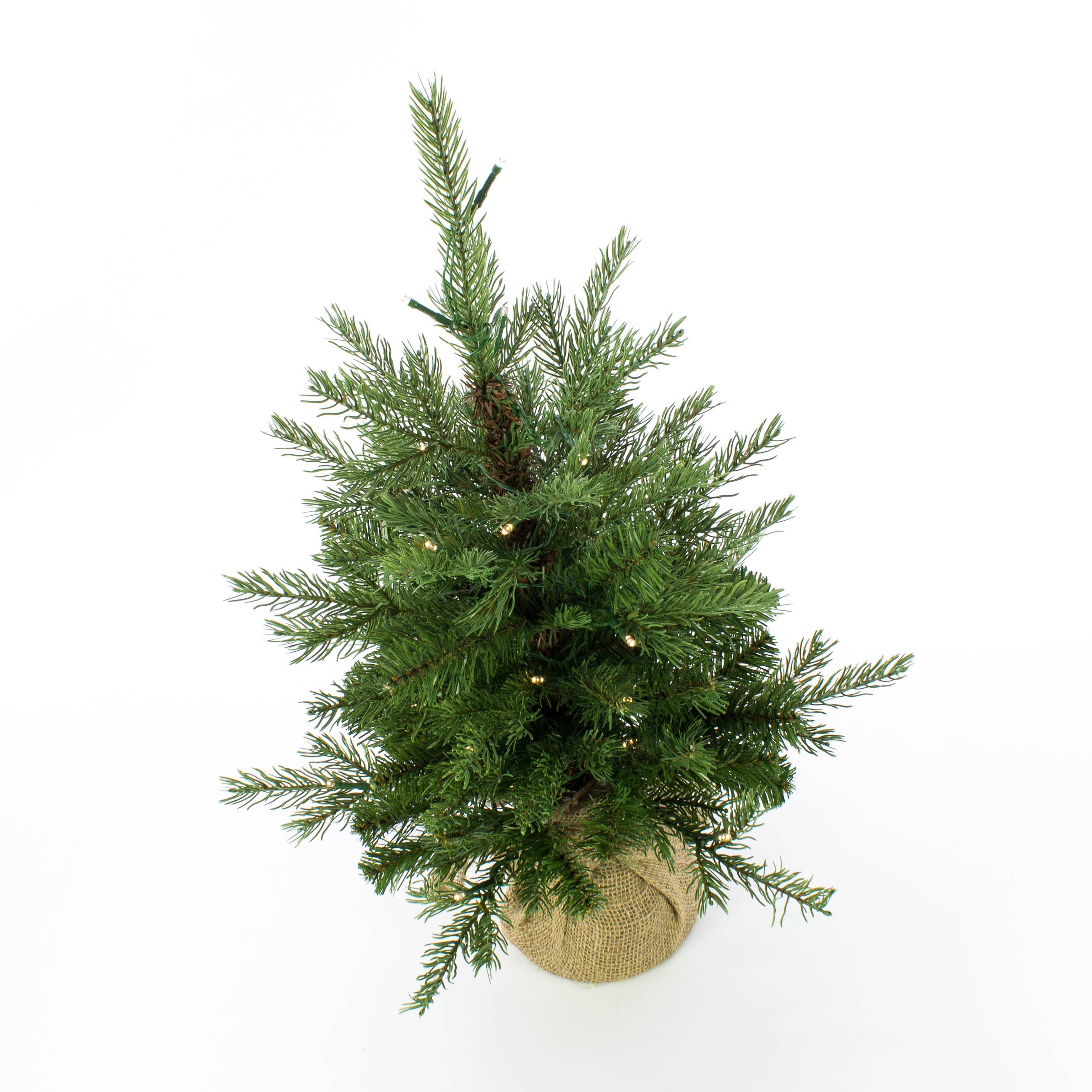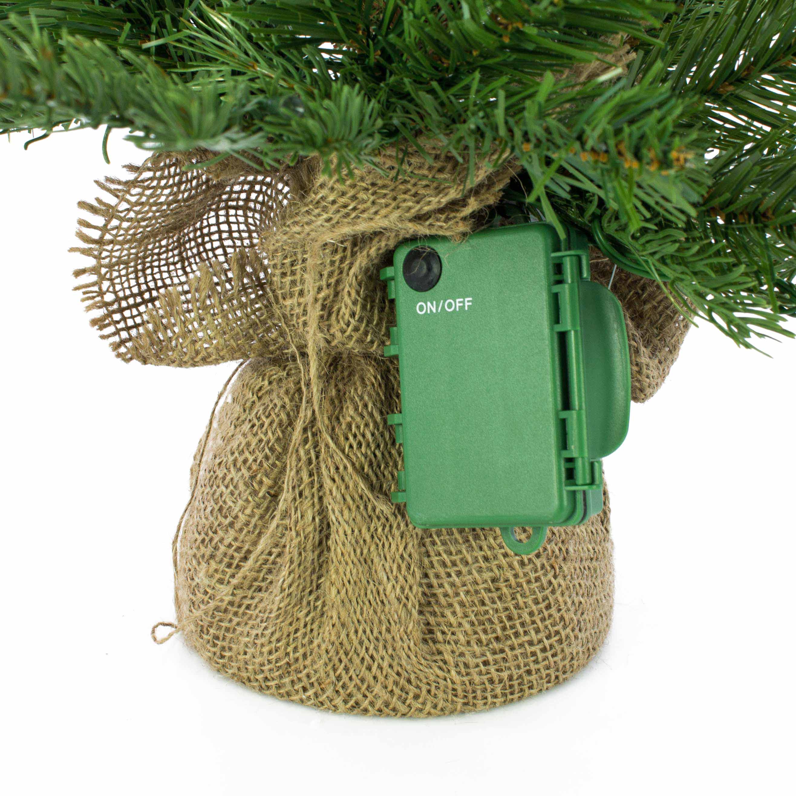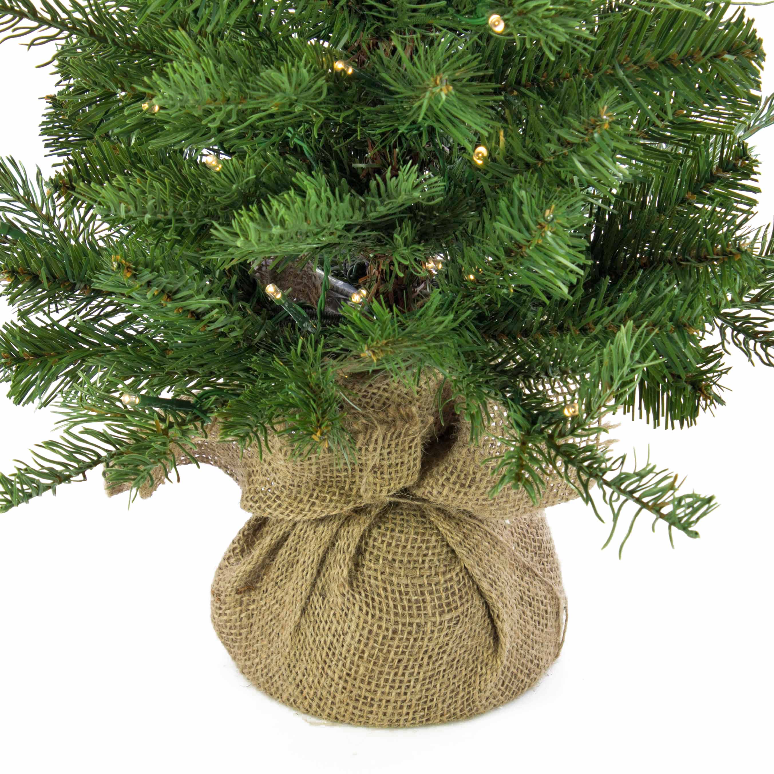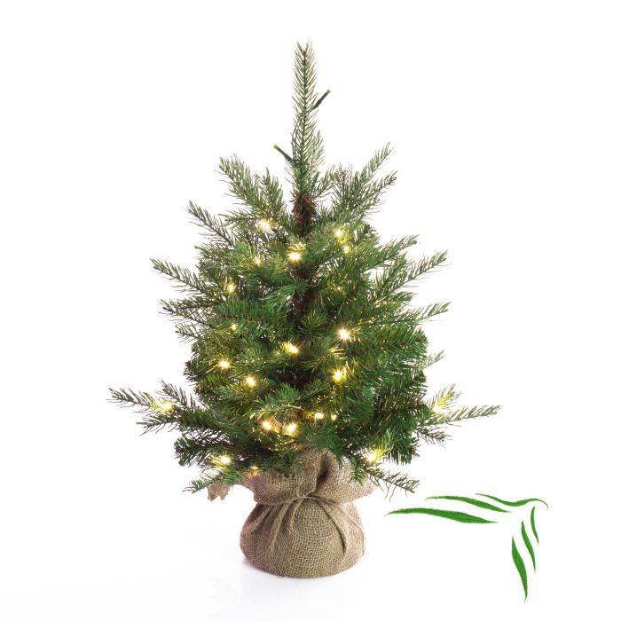 Sapin de Noël synthétique WELLINGTON, sac de jute, LEDs, 60cm, Ø50cm