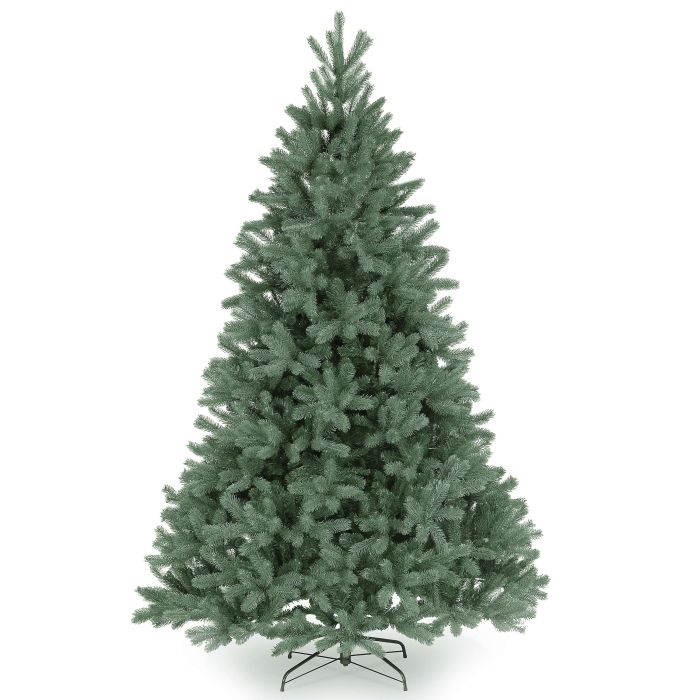 Le sapin de Noël en plastique/arbre de Noël BERN SPEED de couleur bleue avec un support métallique est composé d'aiguilles en PE/PVC. Le sapin de Noël d'une hauteur d'environ 150 cm a un diamètre d'environ 105 cm et conviendra parfaitement comme décoration pour le salon à la maison ou également idéal pour les restaurants, les vitrines, les stands d'exposition, etc.