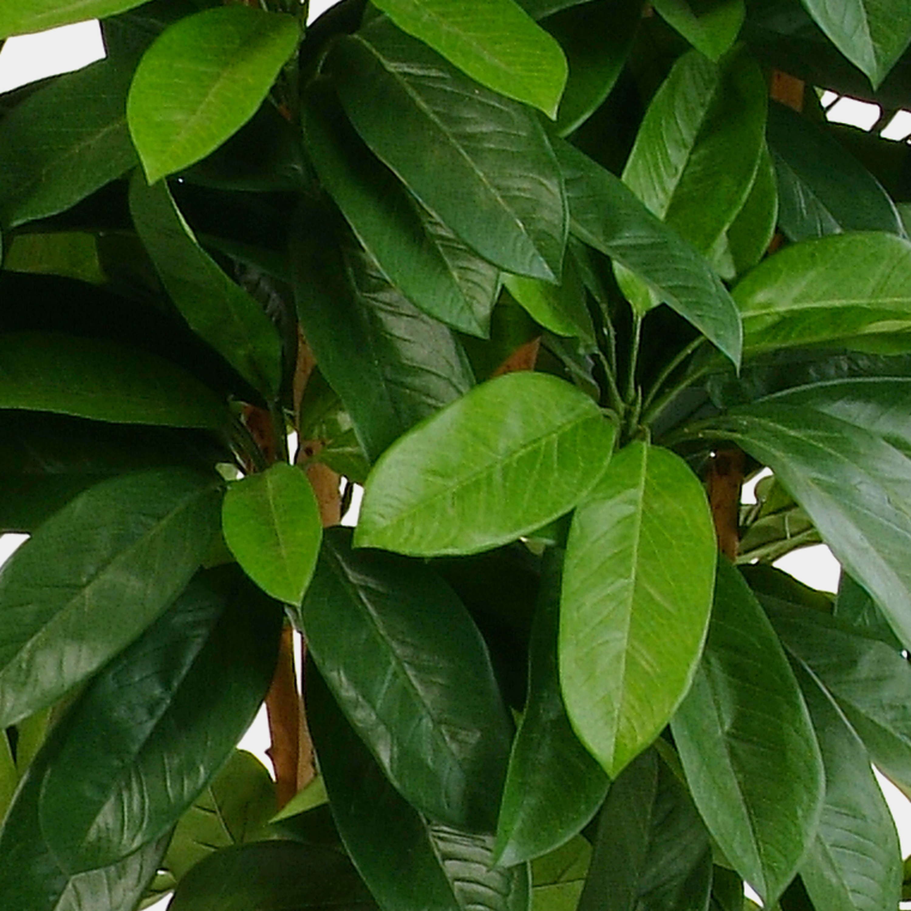 La plante artificielle MALINA est pourvue de beaucoup de feuilles ovales épaisses aux différentes nuances de vert et de 2 troncs naturels bruns. Ce pachira artificiel a la caractéristique d'être difficilement inflammable et mesure au total environ 140 cm de haut.