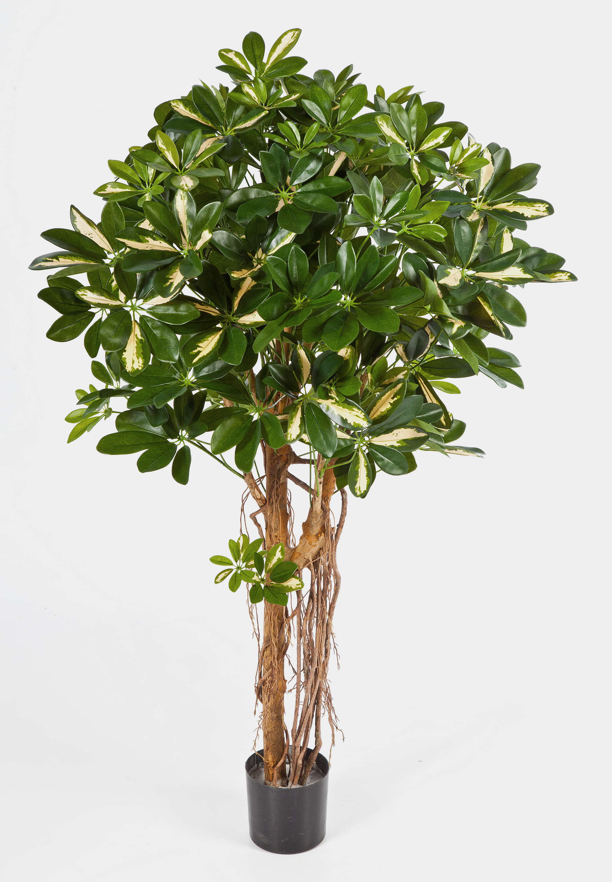 Schefflera artificiel SIENNA, vrais troncs, vert-blanc, 110cm