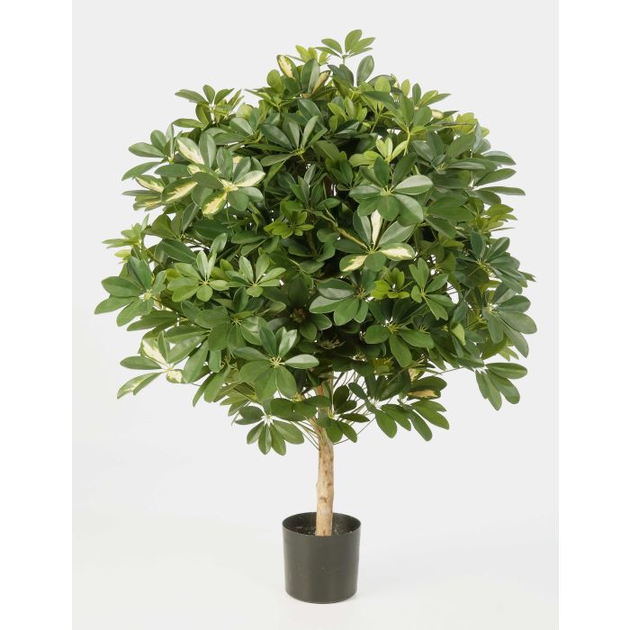 Schefflera Boule artificiel ANTHONY, vrai tronc, vert-blanc, 110cm, Ø90cm