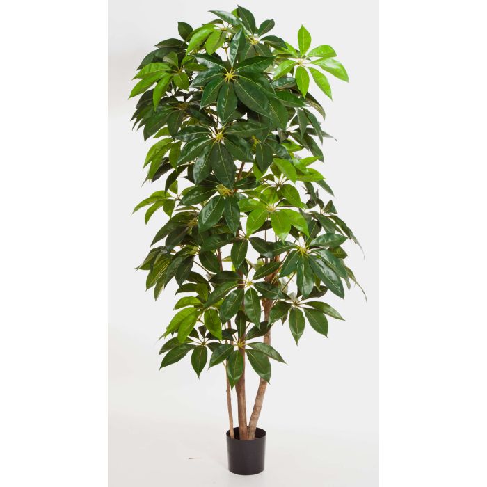 Schefflera artificiel en version DELUXE mesurant au total environ 220 cm de haut. Cette plante décorative est livrée en pot et pourvue d’environ 430 feuilles.