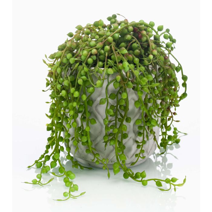 Senecio artificiel PIURA en pot en ciment, vert, 15cm
