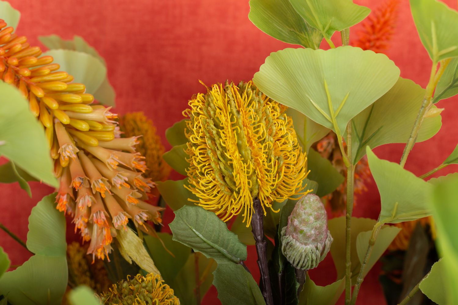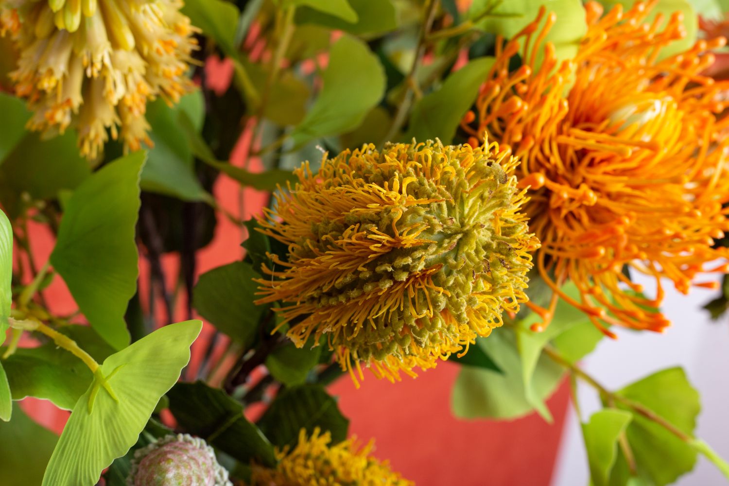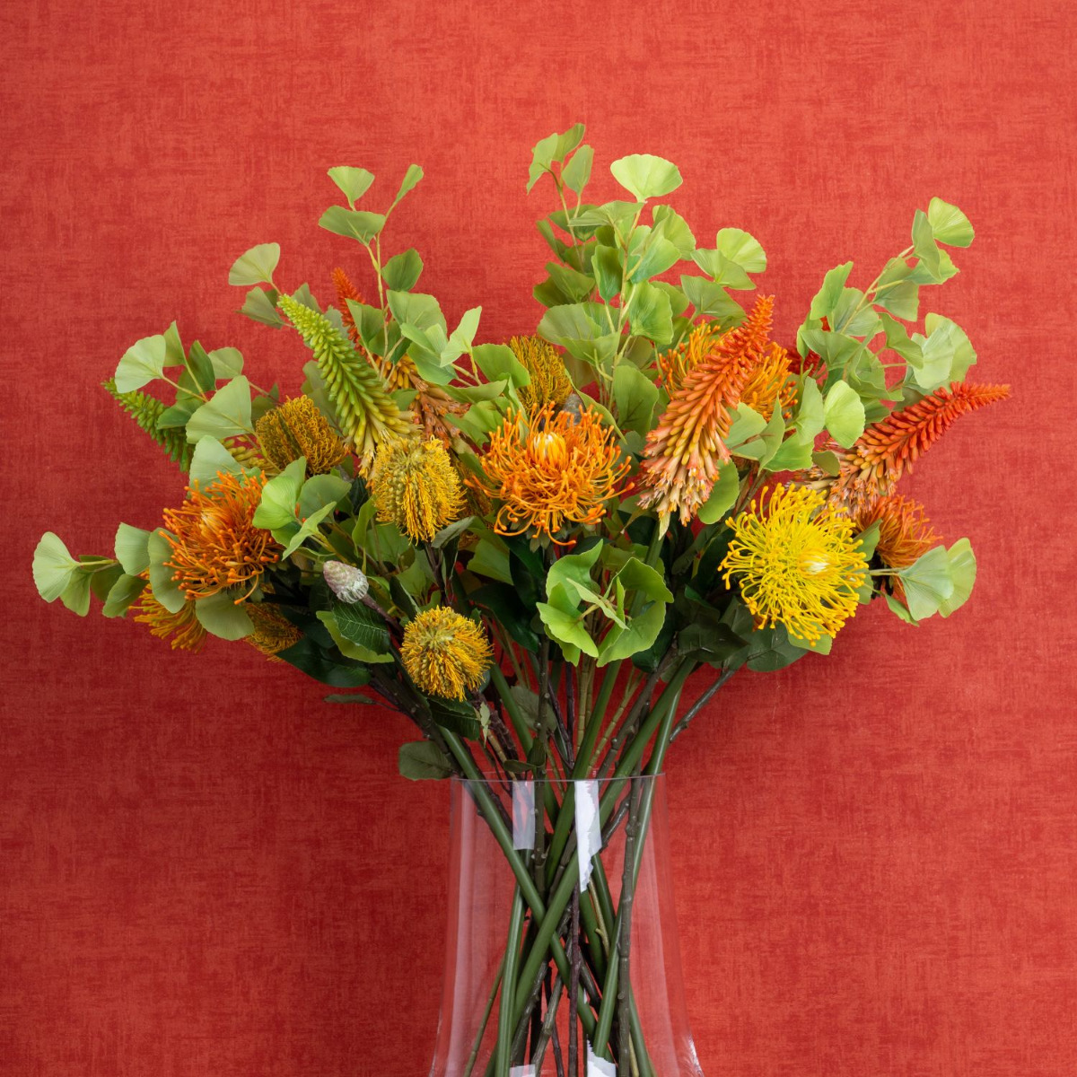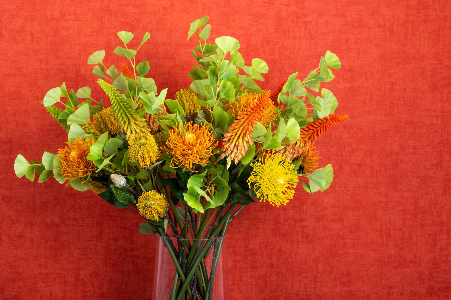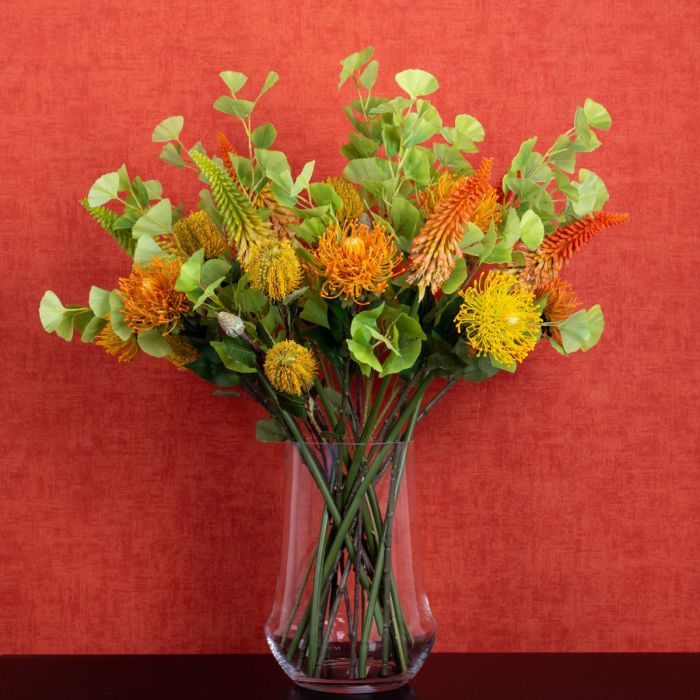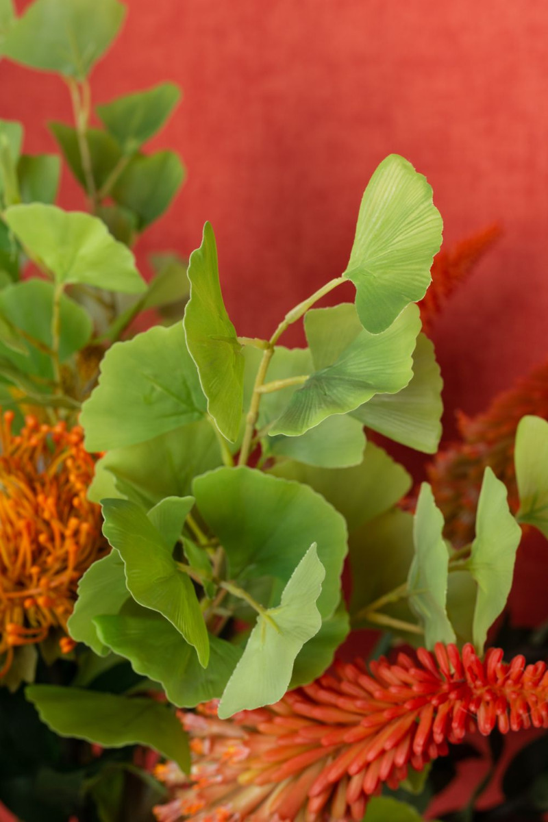 Conseil d'aménagement: Répartir les fleurs uniformément dans le vase et les égayer avec les feuilles de ginkgo.
