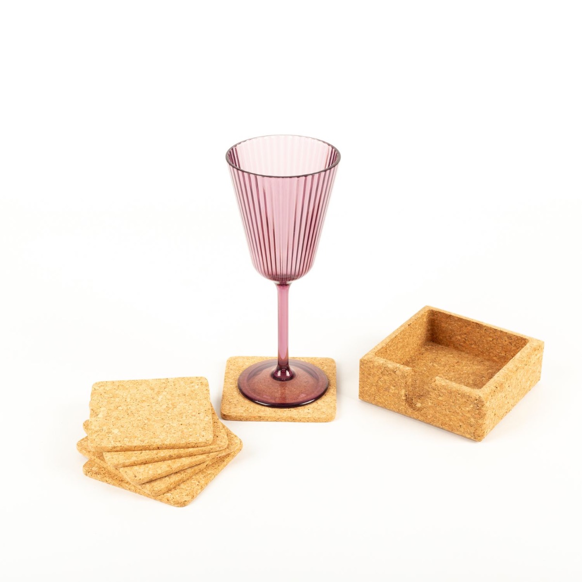 Sous-verre carré en liège MINARA avec support, 6 pièces, naturel, 9x9cm, épaisseur 0,5cm