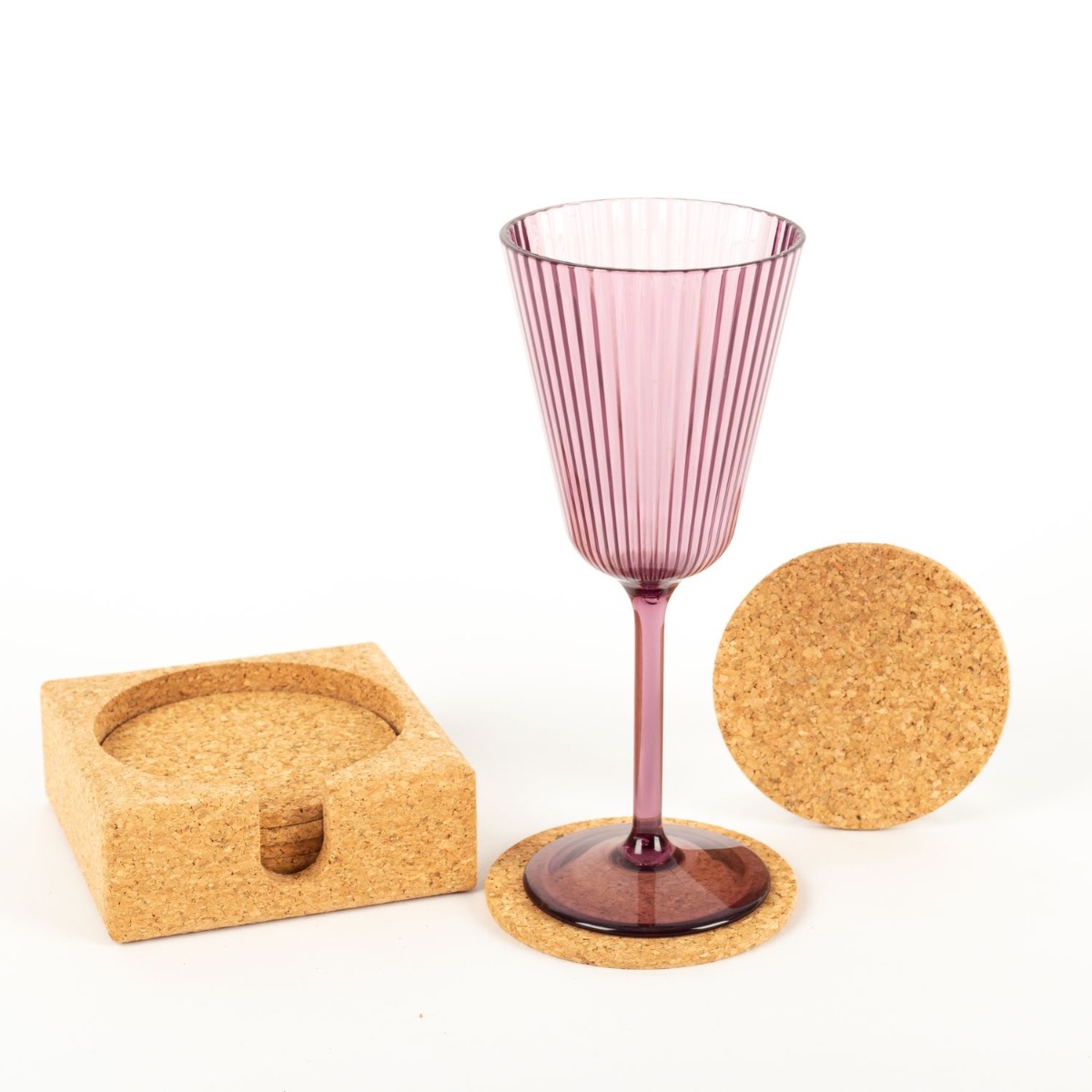 Sous-verre rond en liège MINARA avec support, 6 pièces, naturel, Ø9cm, épaisseur 0,5cm