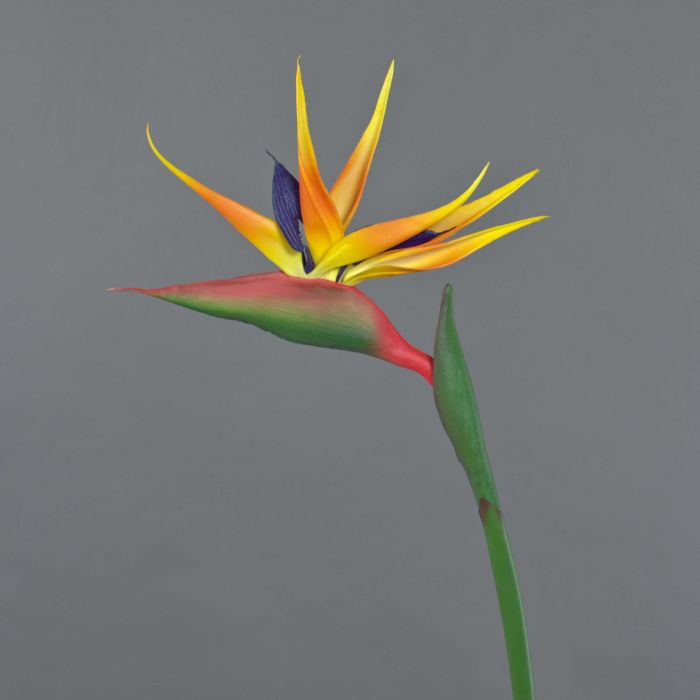 Fleur artificielle Strelitzia LATIFA - fleur d'oiseau de paradis avec une fleur orange-violet. Le strelitzia est pourvu d'une fleur extravagante et mesure environ 80 cm de haut.