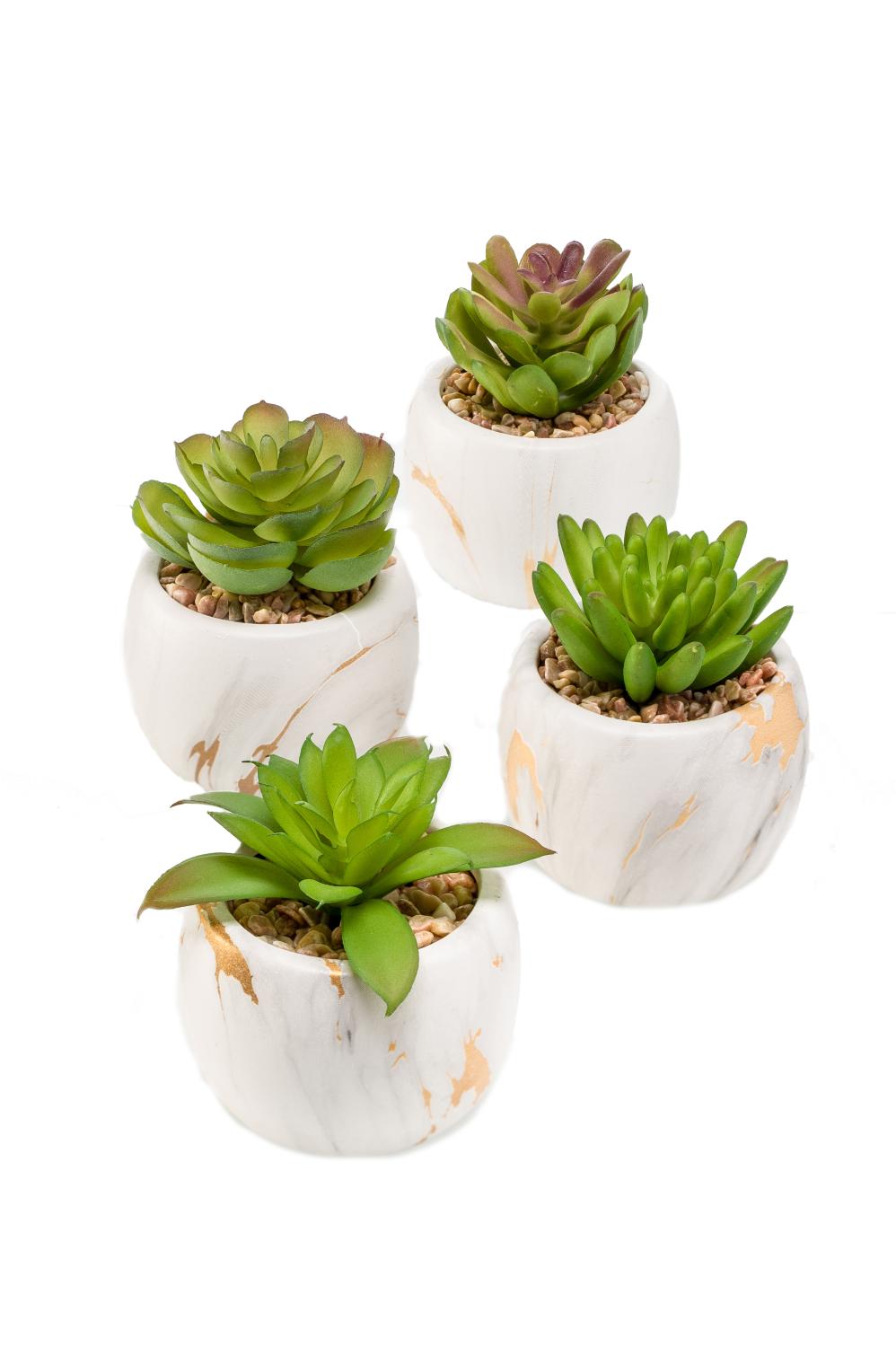 Succulentes artificielles LOYE dans un pot en marbre, 4 pièces, vert, 13-15cm
