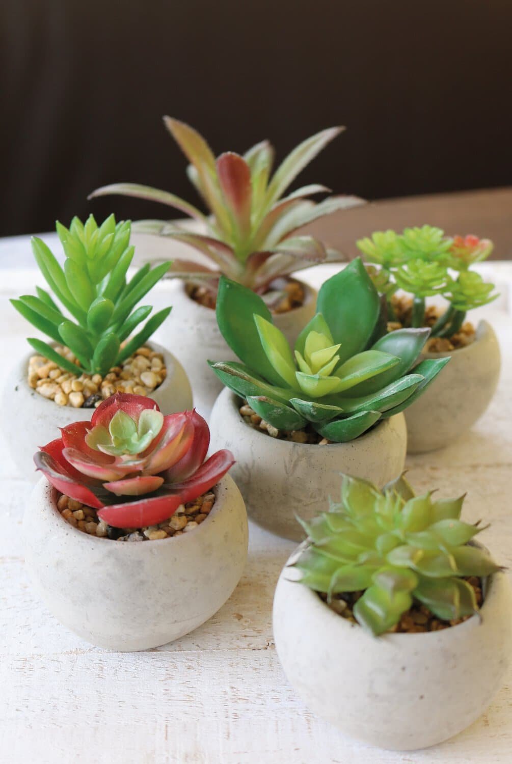 Succulentes artificielles TAYO dans pot en béton, 6 pièces, vert-rouge, 6-10cm