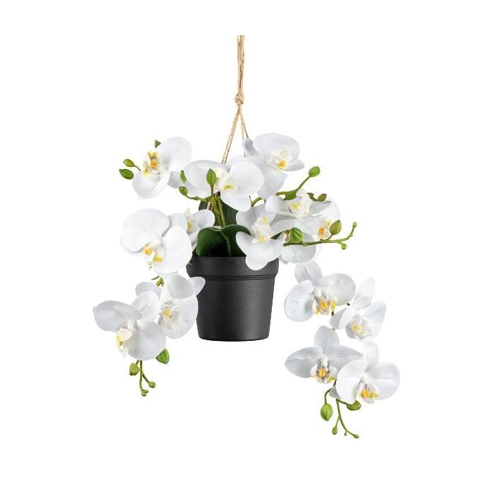 Suspension d'orchidée Phalaenopsis artificielle LARSAY, pot décoratif, blanc, 25cm