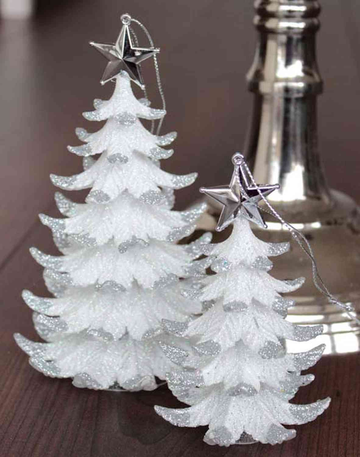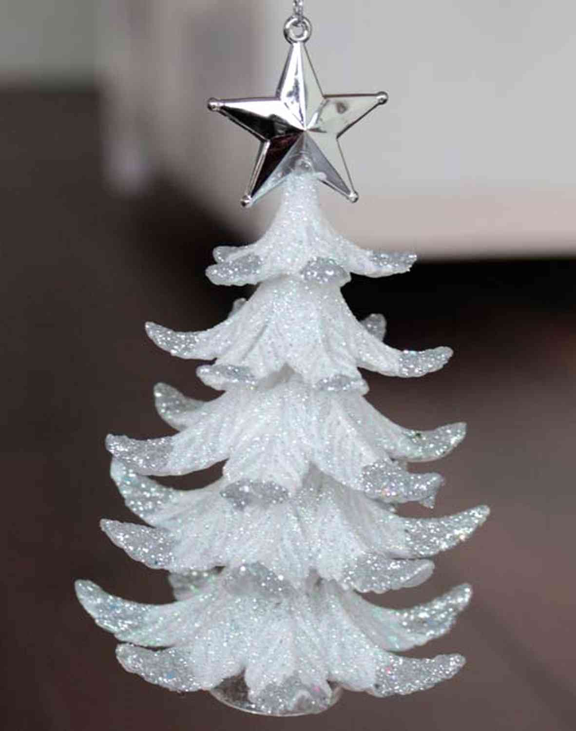 Suspension de sapin de Noël RION avec étoile, acrylique, paillettes, blanc-argenté, 12cm, Ø9cm