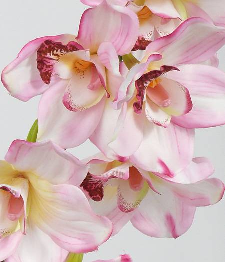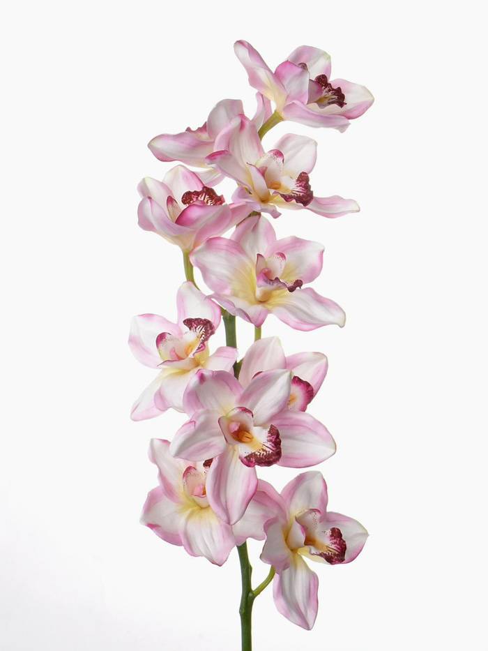 Branche d'orchidée Cymbidium en tissu KALAH avec une longueur totale d'environ 90 cm de couleur blanc-rose.