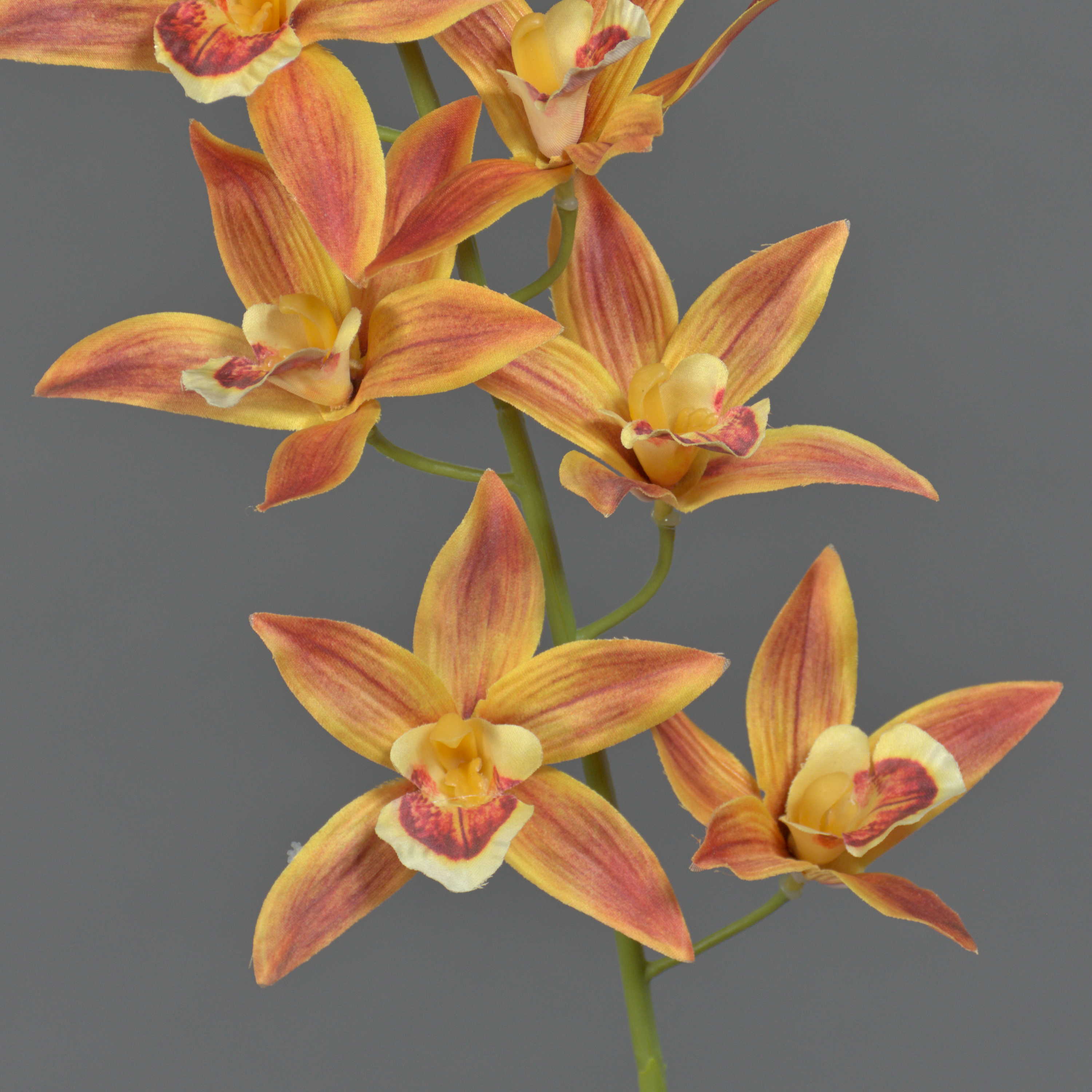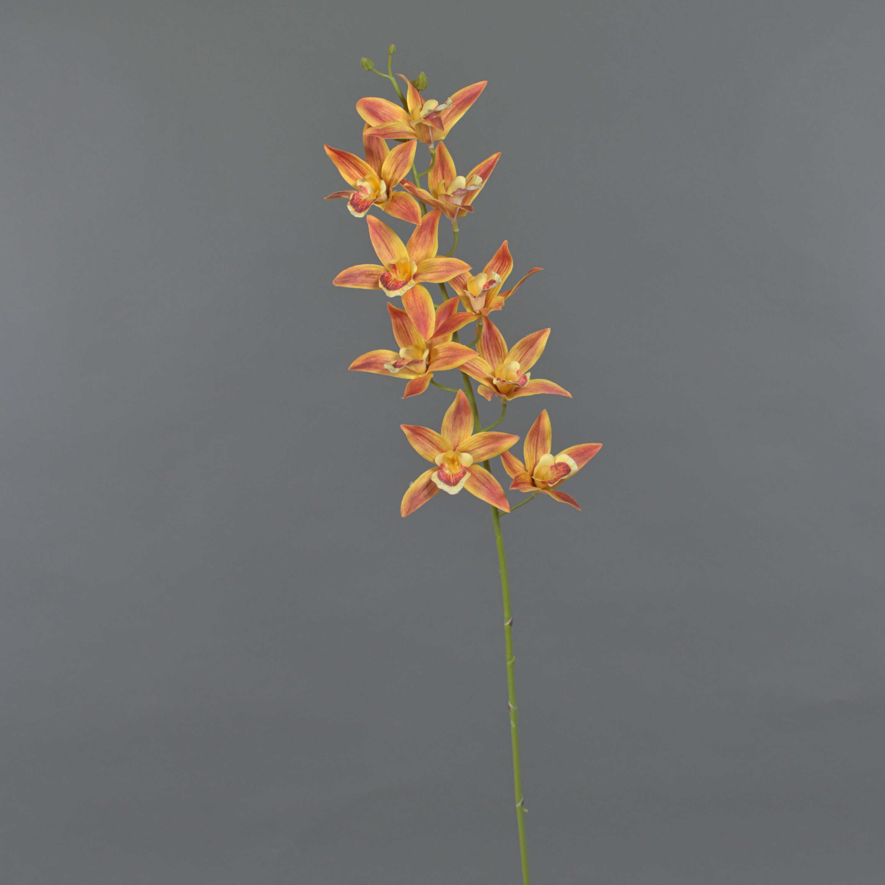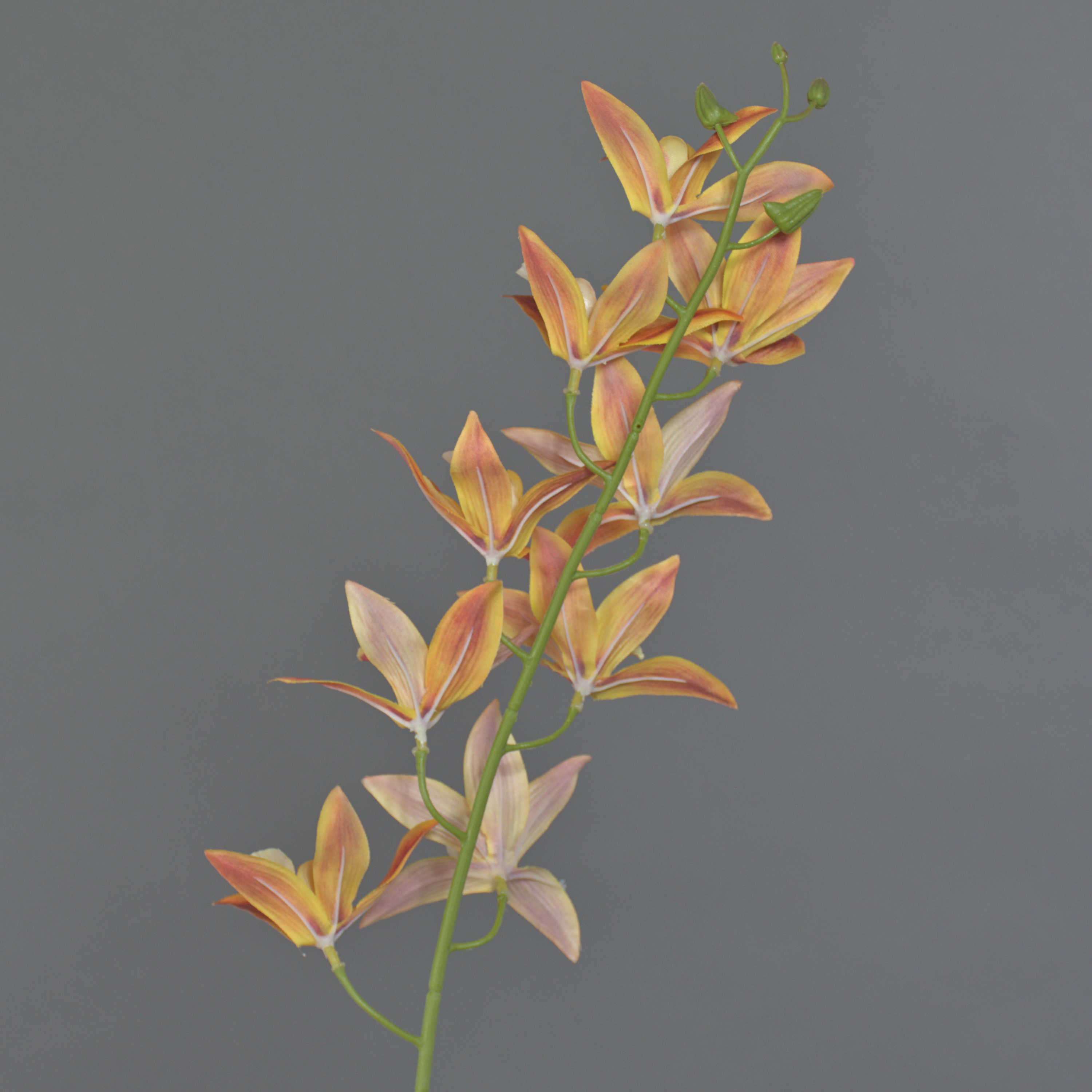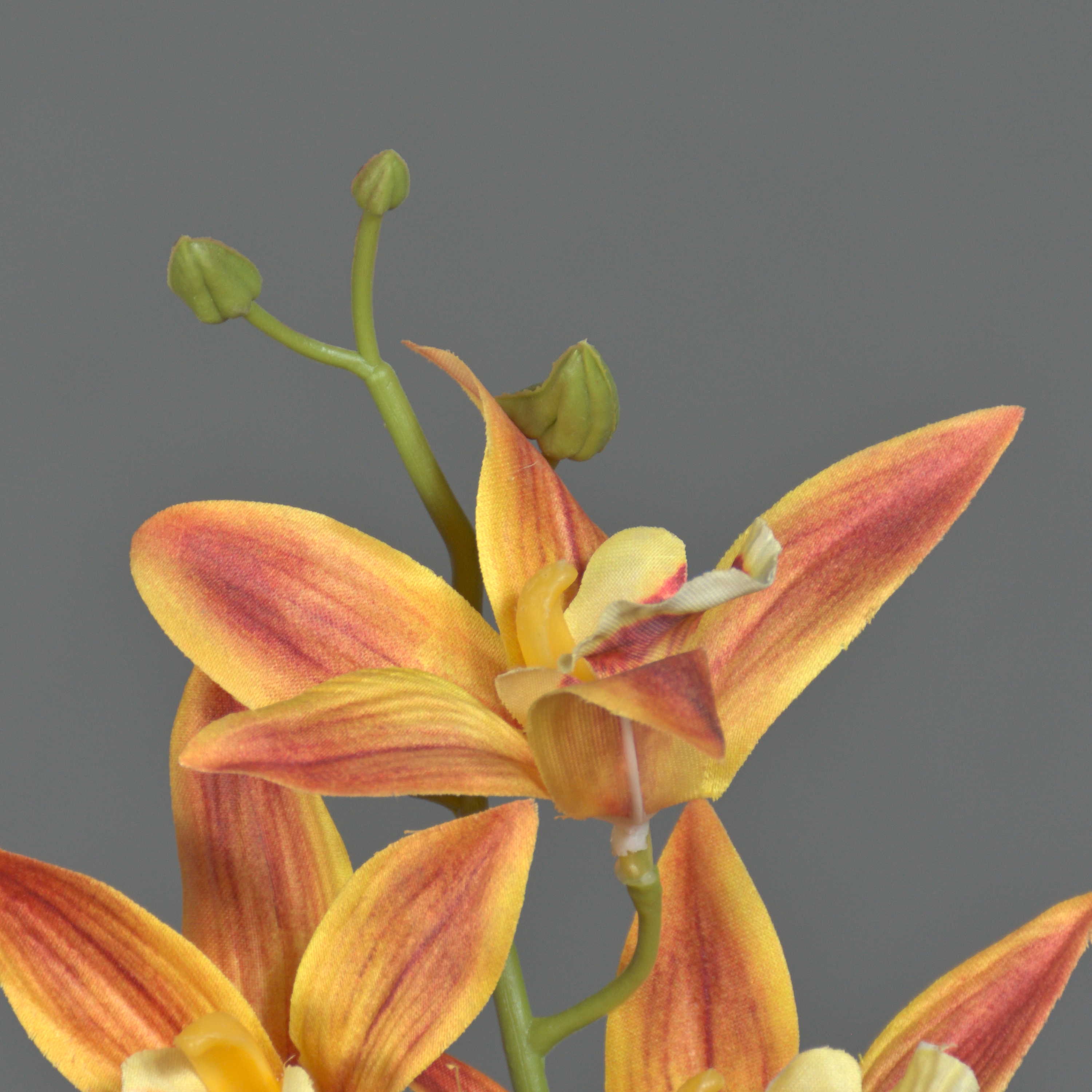 Tige d'orchidée Cymbidium artificielle YAMEI, orange-jaune, 80cm