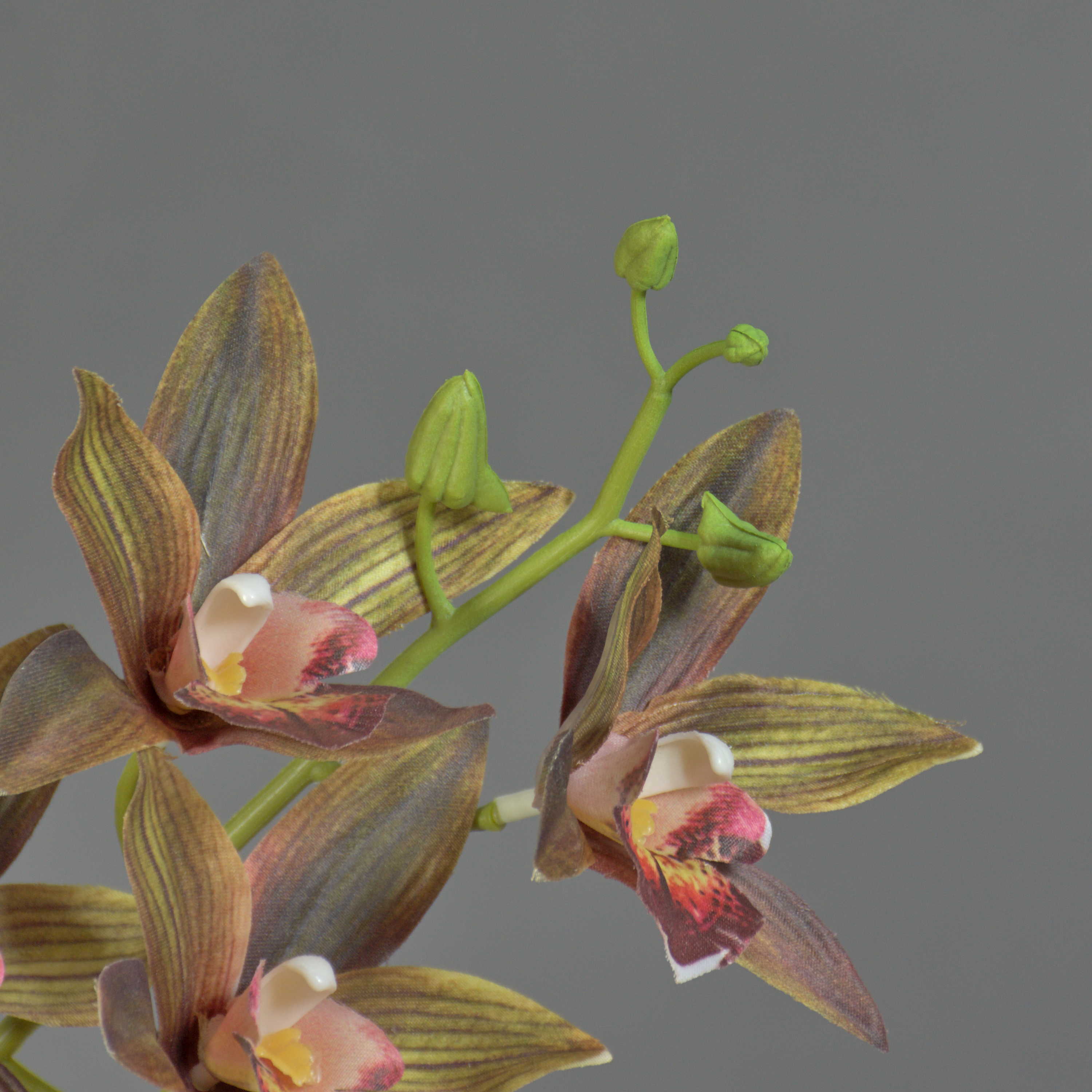 Tige d'orchidée Cymbidium artificielle YAMEI, rouge foncé-vert, 80cm