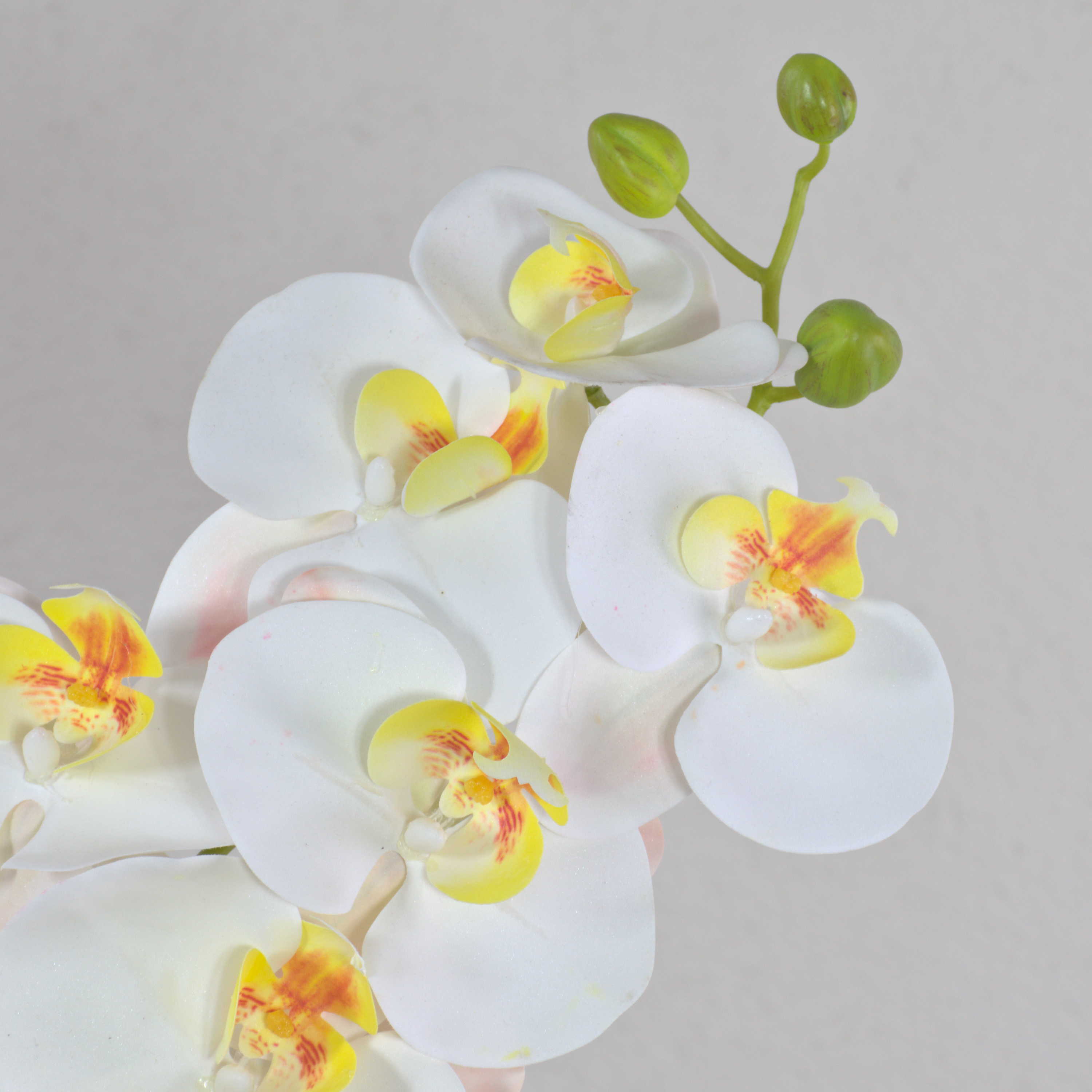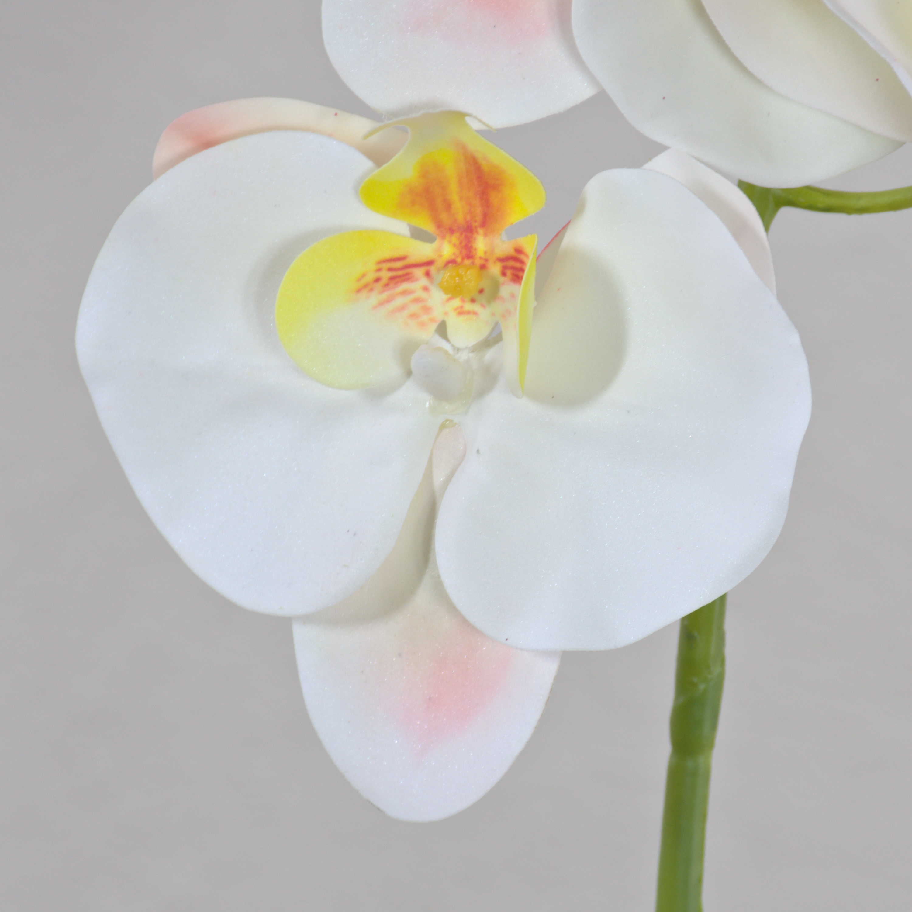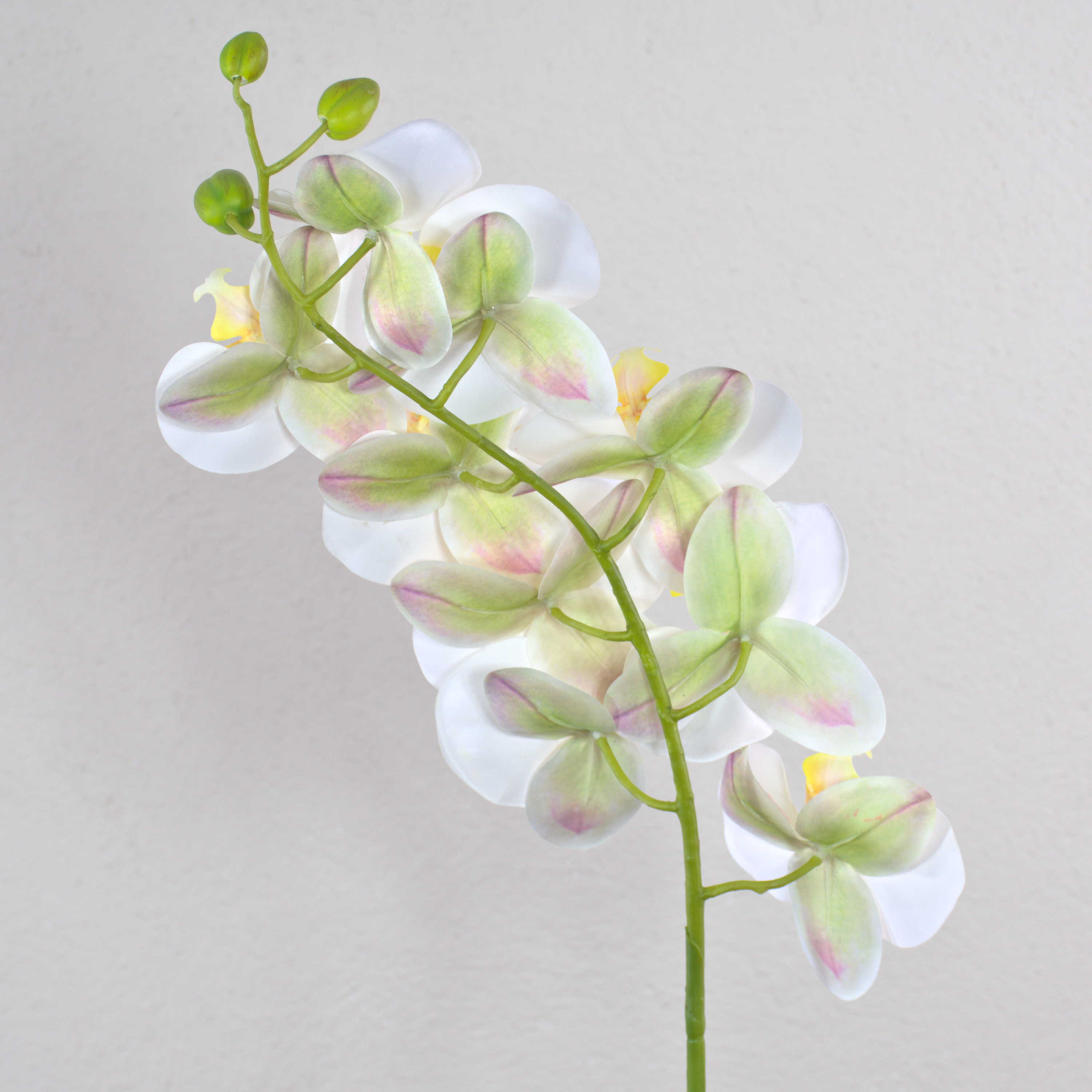 Cette tige d'orchidée artificielle OPHELIA impressionnera par ses pétales au toucher naturel qui sont pourvus d'un joli dégradé de couleurs et de fleurs finement veinées.