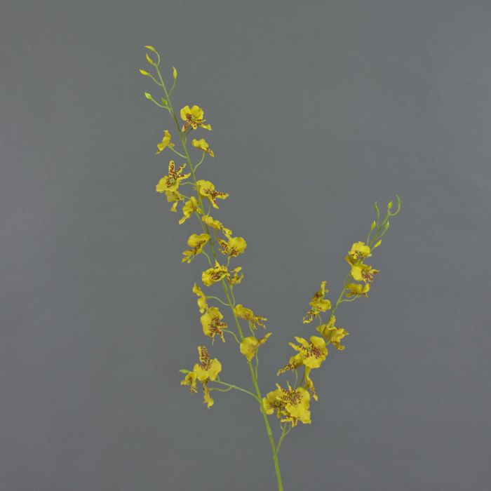 La branche d'orchidée Oncidium artificielle TALIAH de couleur jaune a une longueur totale d'environ 85 cm et un diamètre des fleurs d'environ 3 - 4 cm.