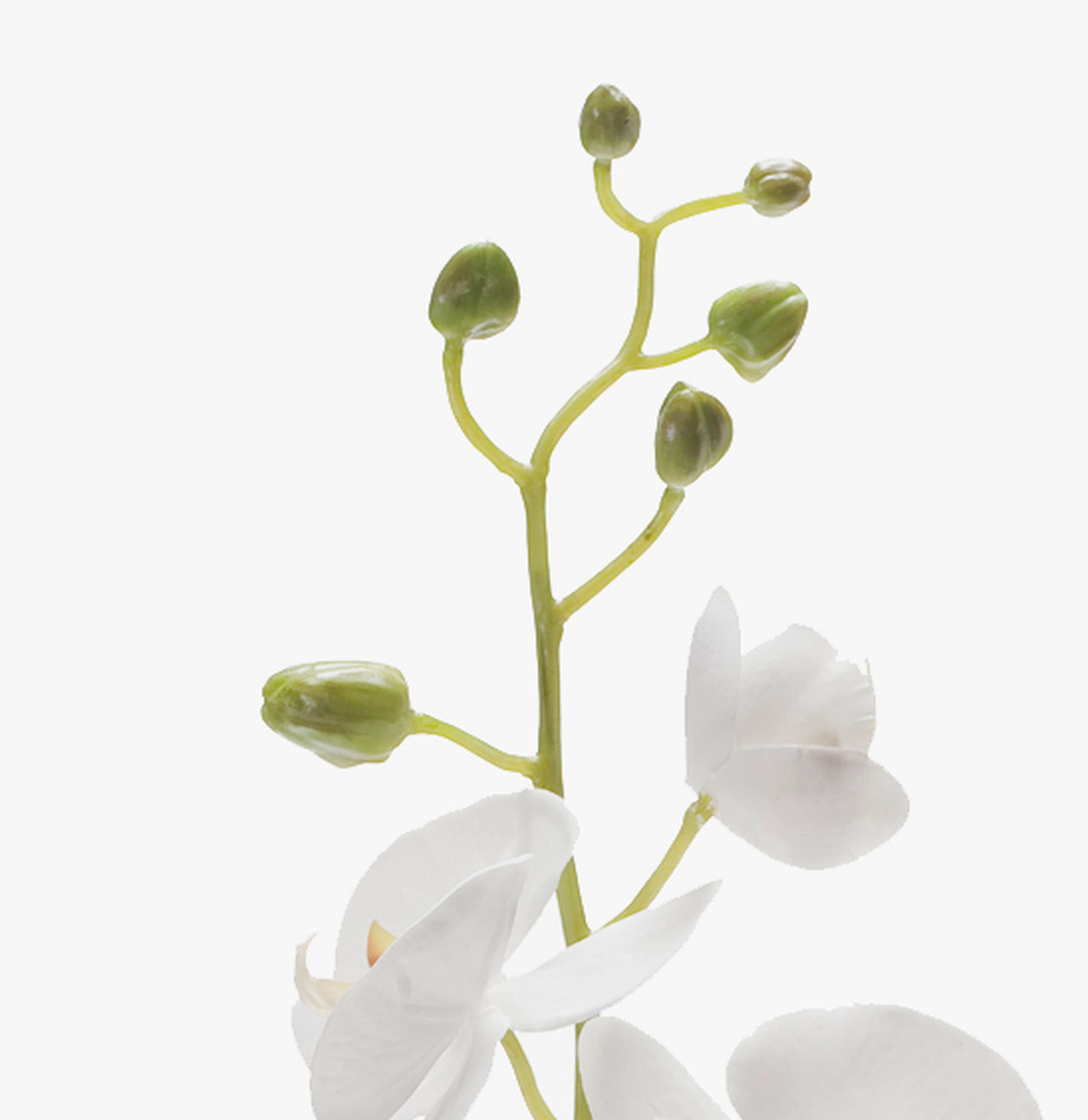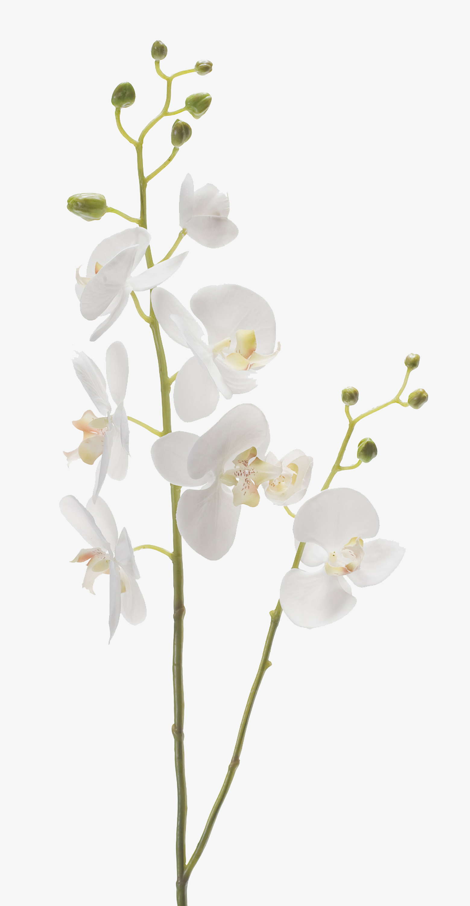 L’orchidée artificielle mesure au total environ 95 cm de long. Cette superbe tige d’aspect naturel est pourvue de 8 fleurs blanches et 10 boutons.