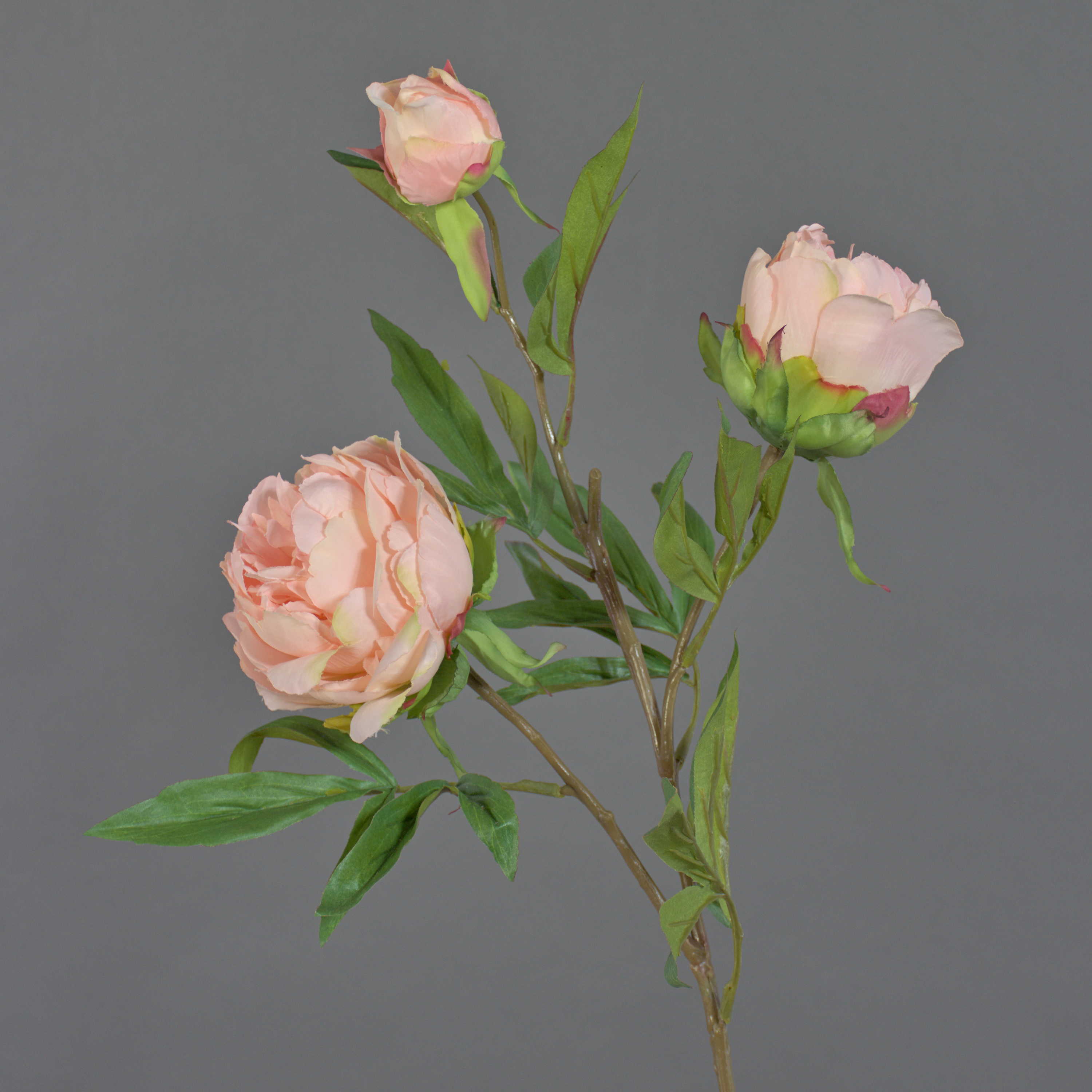 La pivoine artificielle MANJA de couleur rose a un diamètre des fleurs d'environ 8 - 10 cm. Grâce aux ramifications et feuilles en forme d'étoile, celle-ci est mise en valeur dans un vase à poser au sol.
