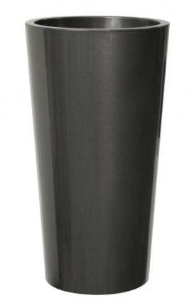Vase à plantes rond et haut THERESITA en plastique, avec insert, kit d'arrosage, anthracite, 61,5cm, Ø33cm