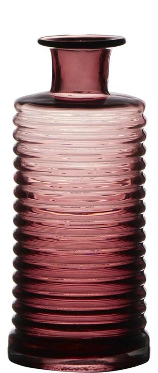 Vase bouteille en verre STUART avec rainures, rose fuchsia-transparent, 21,5cm, Ø9,5cm