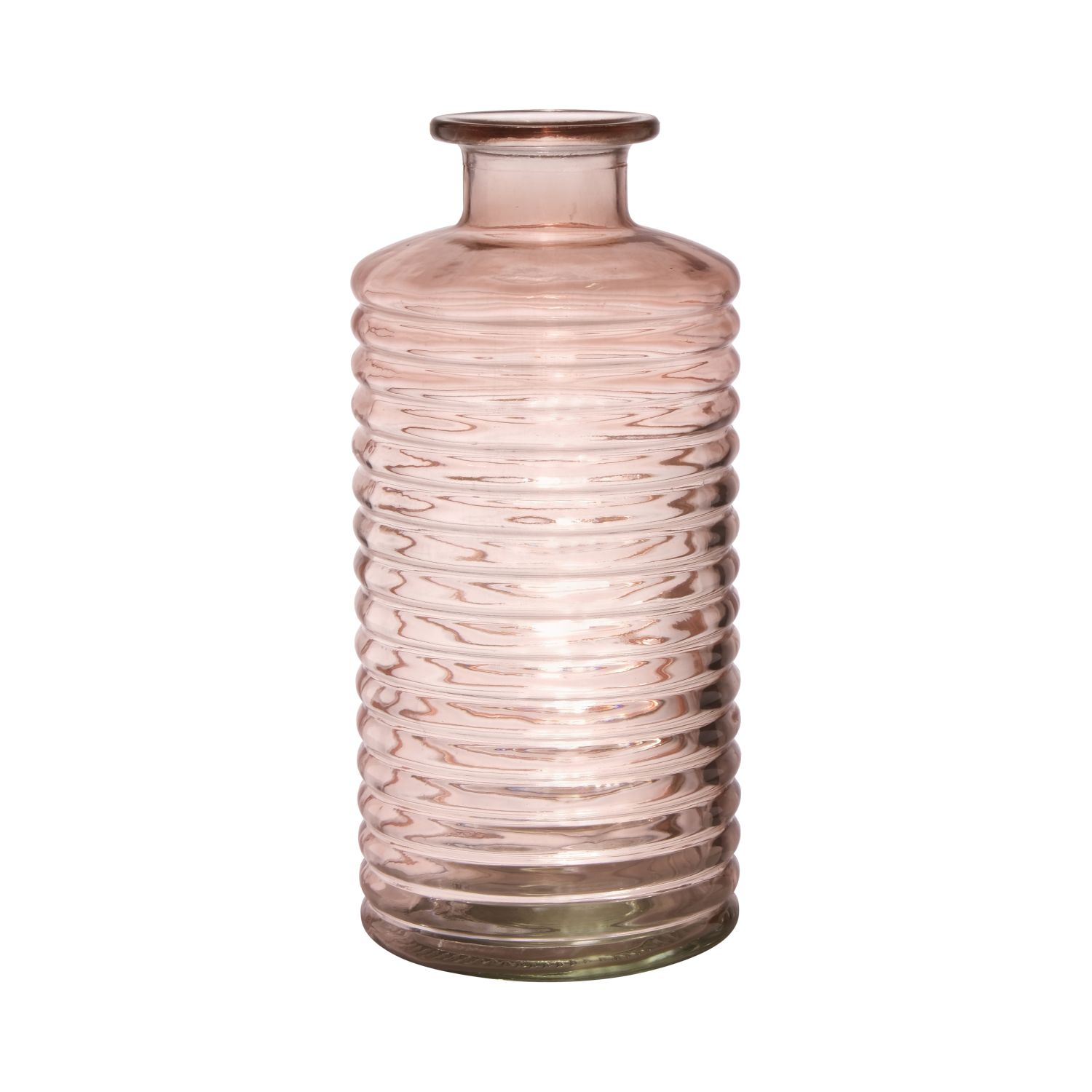 Vase bouteille en verre STUART avec rainures, rose pâle-transparent, 31cm, Ø14,5cm