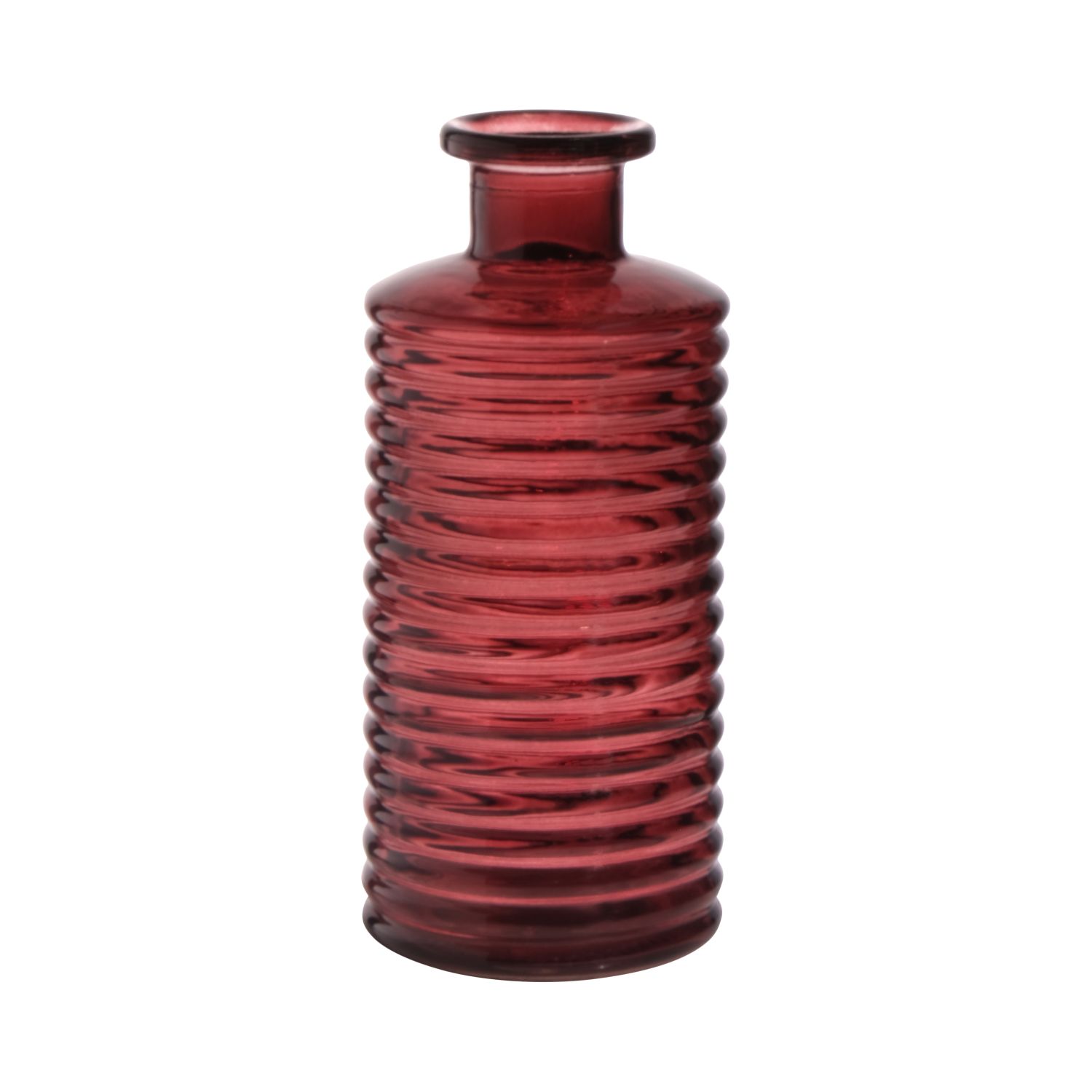 Vase bouteille en verre STUART avec rainures, rouge brun-transparent, 21,5cm, Ø9,5cm