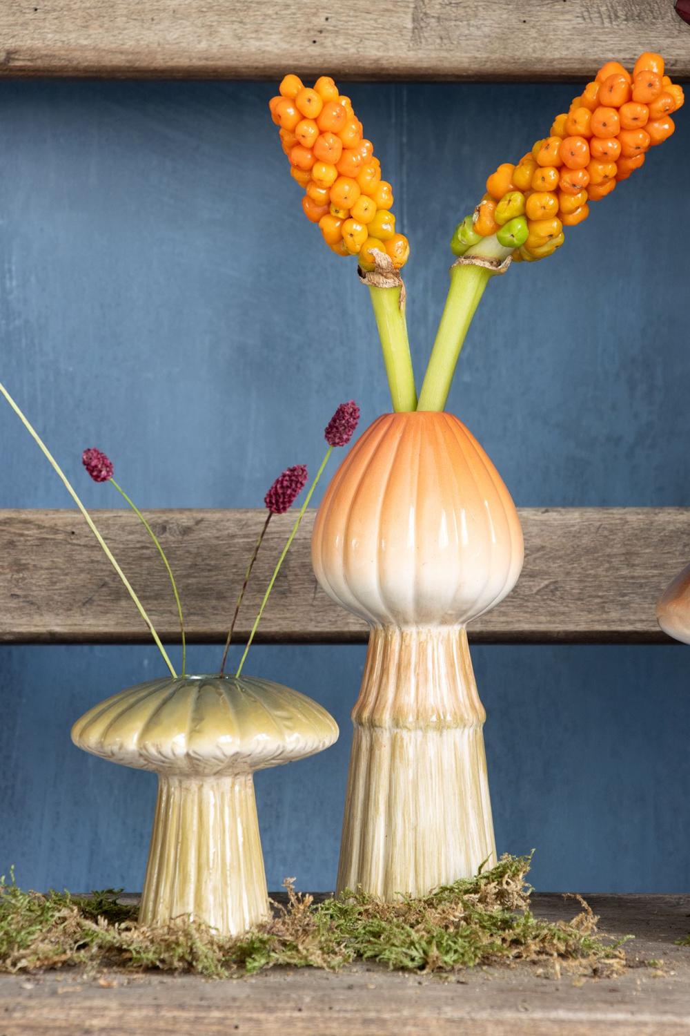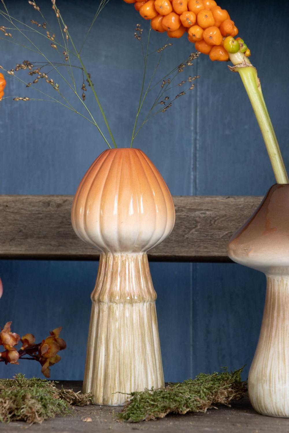 Vase champignon en céramique RADOMILA, rainures, orange-beige, 18cm, Ø7,4cm