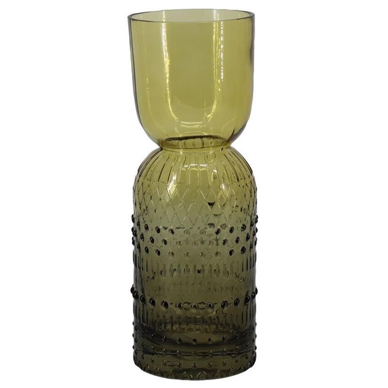 Vase décoratif en verre DESCON avec motif à pois, cognac-brun-transparent, 28,3cm, Ø10,5cm