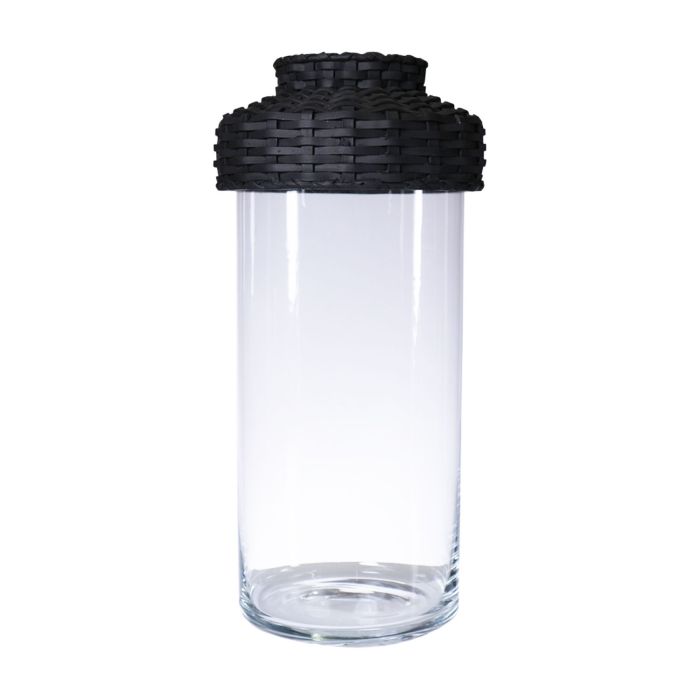 Vase décoratif en verre JINTANA avec capuchon en rotin ou pied, transparent-noir, 45cm, Ø18,5cm