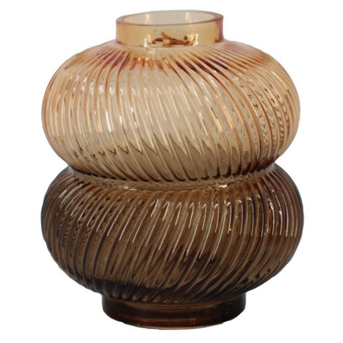 Vase décoratif en verre KORNELIA avec des rainures, ambre-brun-transparent, 16,3cm, Ø14,7cm