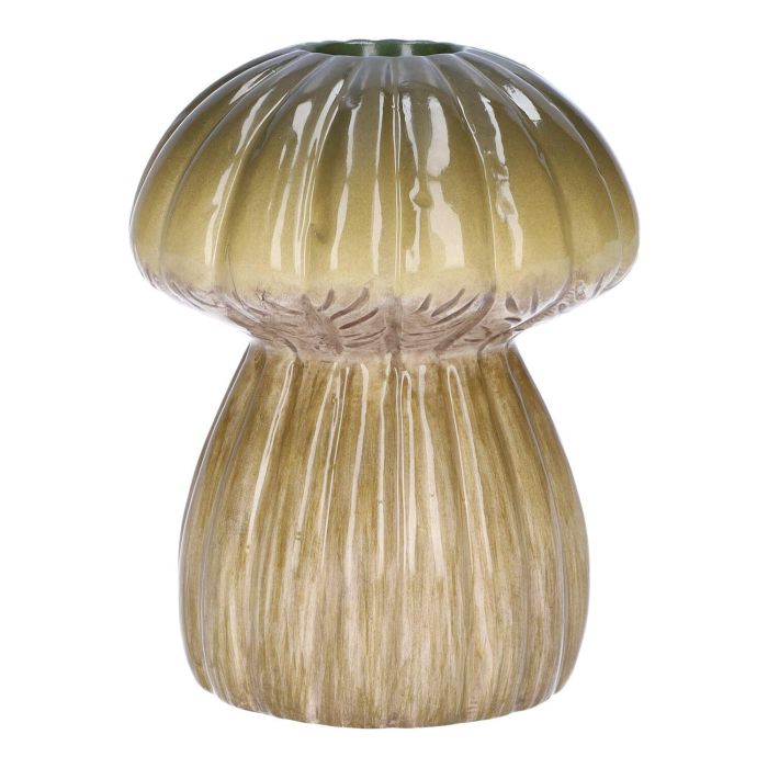 Vase en céramique REFELINDE, en forme de champignon, rainures, vert-beige, 12cm, Ø9,5cm