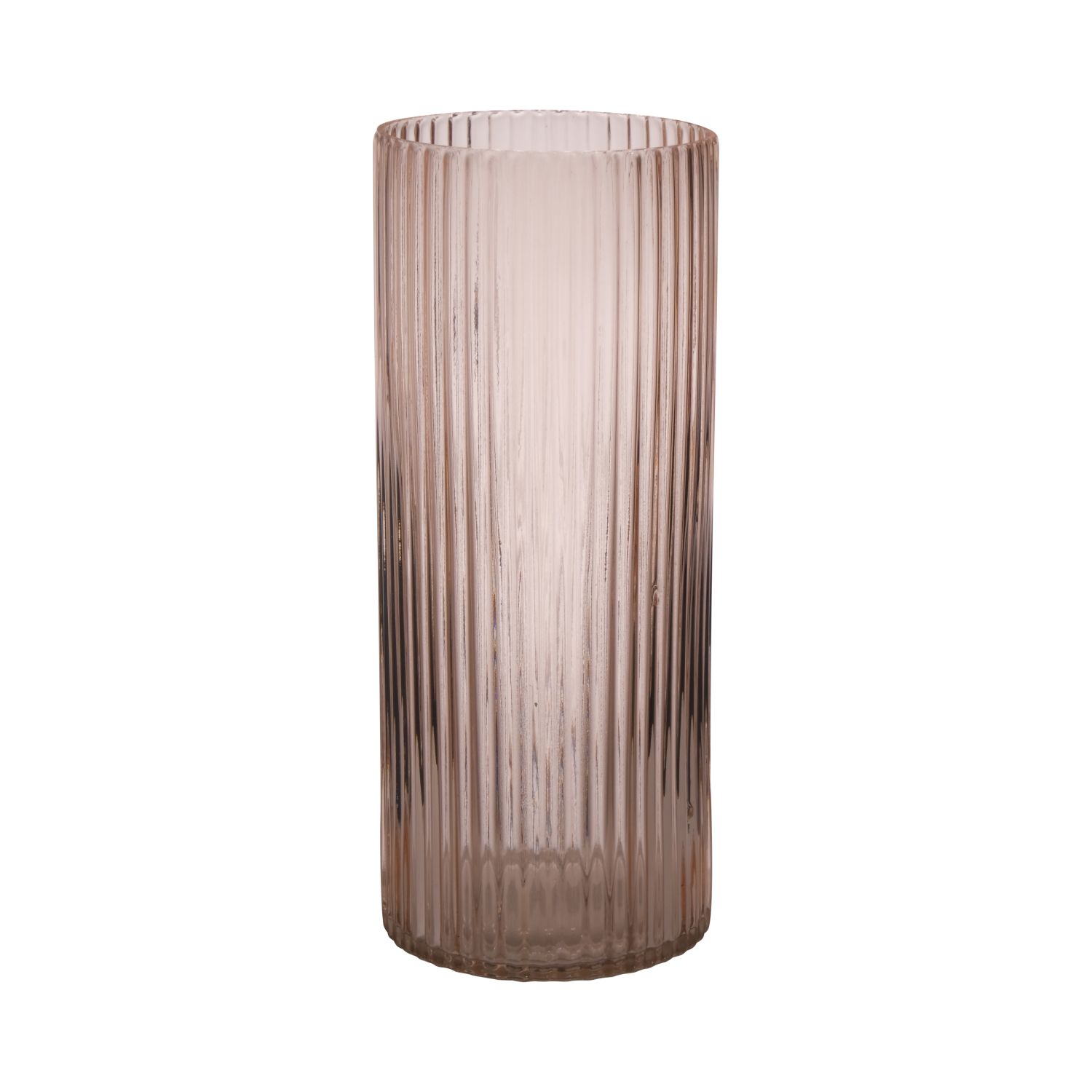 Vase en verre moderne SORCHA avec rainures, rose pâle-transparent, 30cm, Ø12,5cm