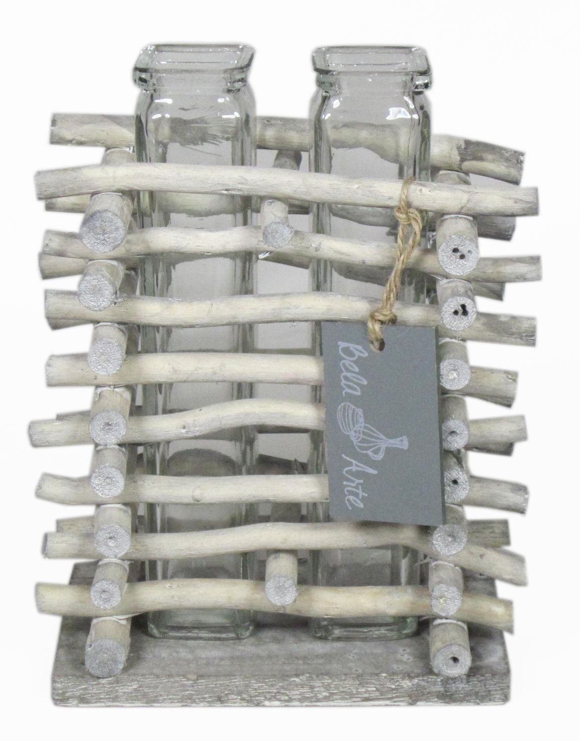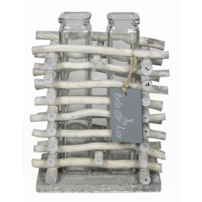 Vase en verre pour fleurs à tige SIHAM, support en bois, 2 verres, transparent, 13,5x8,5x17cm
