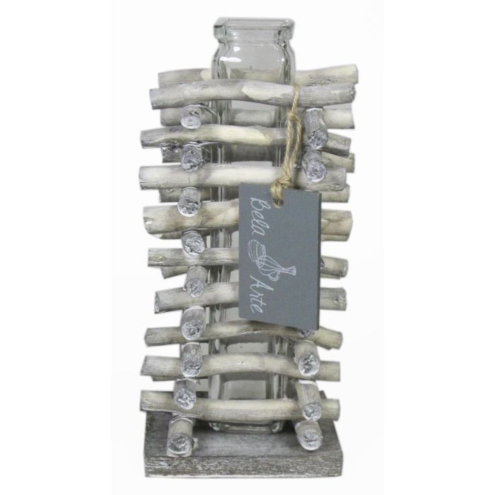 Vase en verre pour fleurs à tige SIHAM, support en bois, transparent, 8,5x8,5x17cm