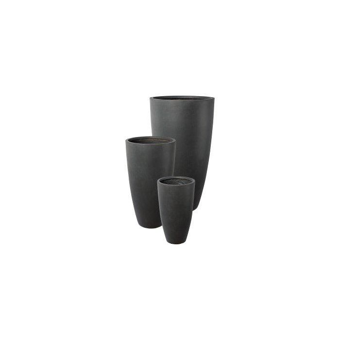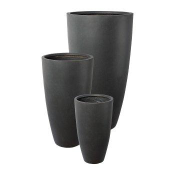 Vase rond haut KIRIMA, 3 pièces, fibre de verre, anthracite, 34x60cm, 44x80cm, 54x100cm