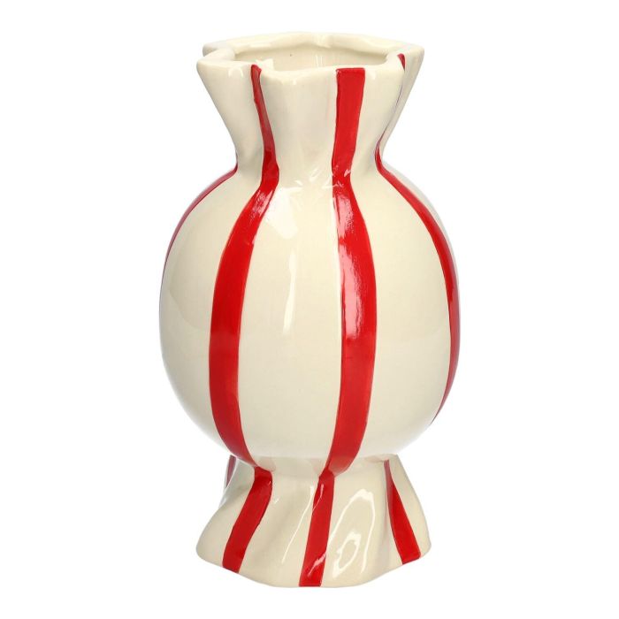 Vase soliflore bombé en forme de bonbon AMIEL en céramique, avec des rayures verticales, rouge-blanc, 24,7cm, Ø14 cm