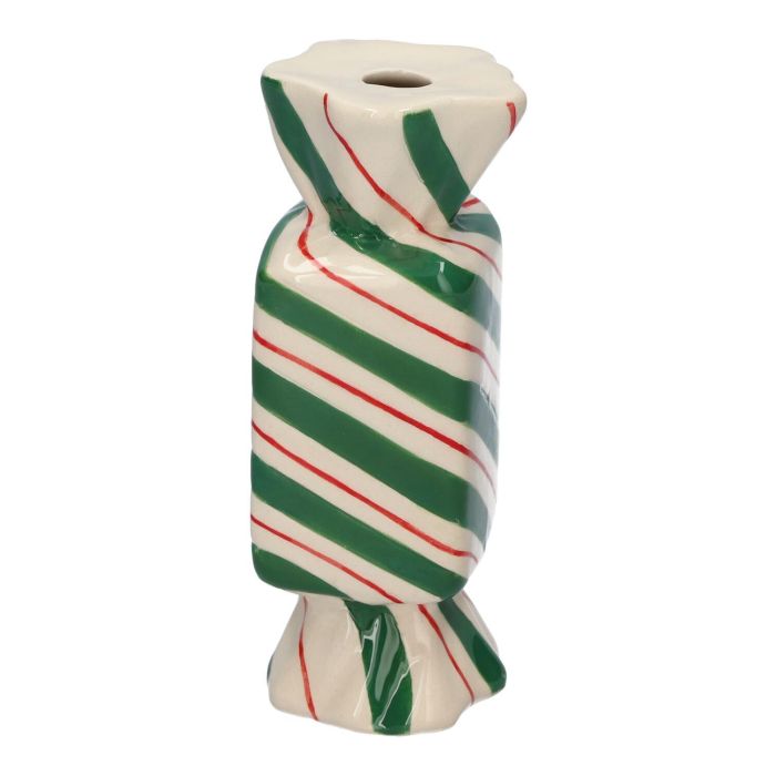 Vase soliflore carré en forme de bonbon AMIEL en céramique, avec des lignes obliques, vert-rouge-blanc, 4,5x4,5x11,5cm