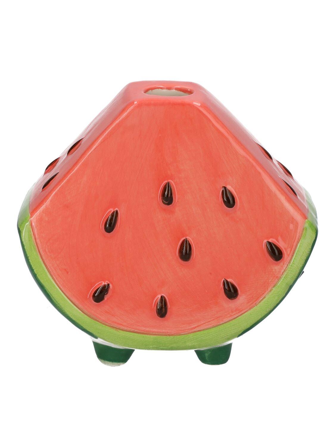 Vase soliflore en forme de melon d'eau TILLAS en céramique, avec des pieds, rouge-vert-brun, 10x6x8,7cm