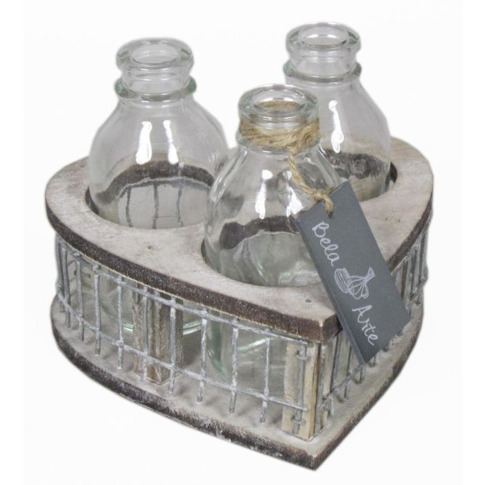 Vases à fleurs en verre LEATRICE OCEAN dans une boîte en bois, 3 verres, transparent, 11cm, Ø15cm