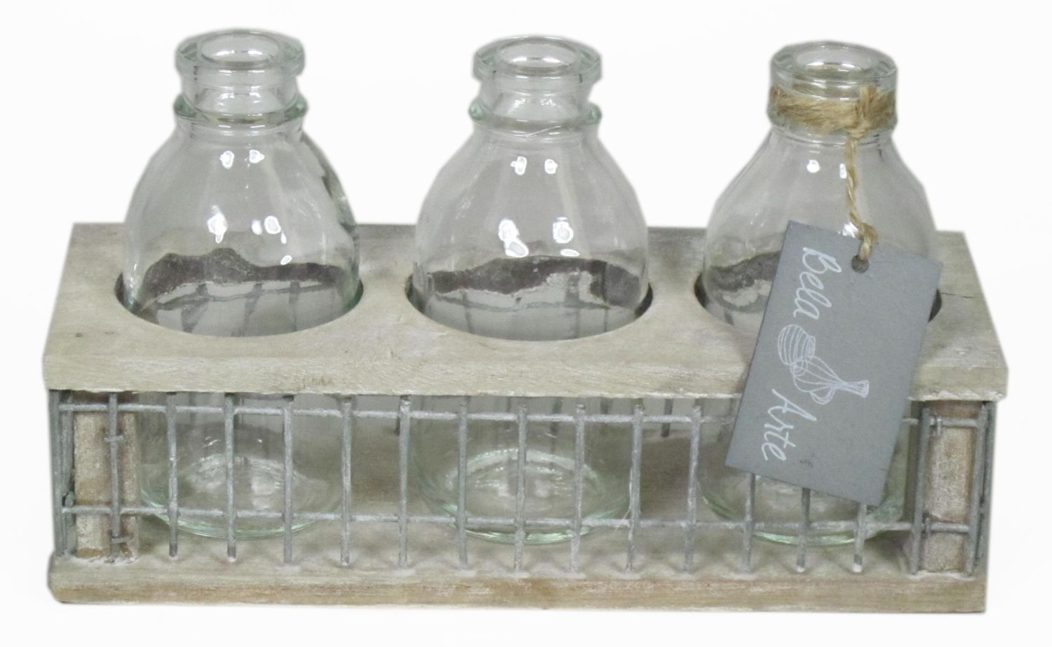 Vases à fleurs en verre LEATRICE OCEAN dans une boîte en bois, 3 verres, transparent, 21x8x11cm