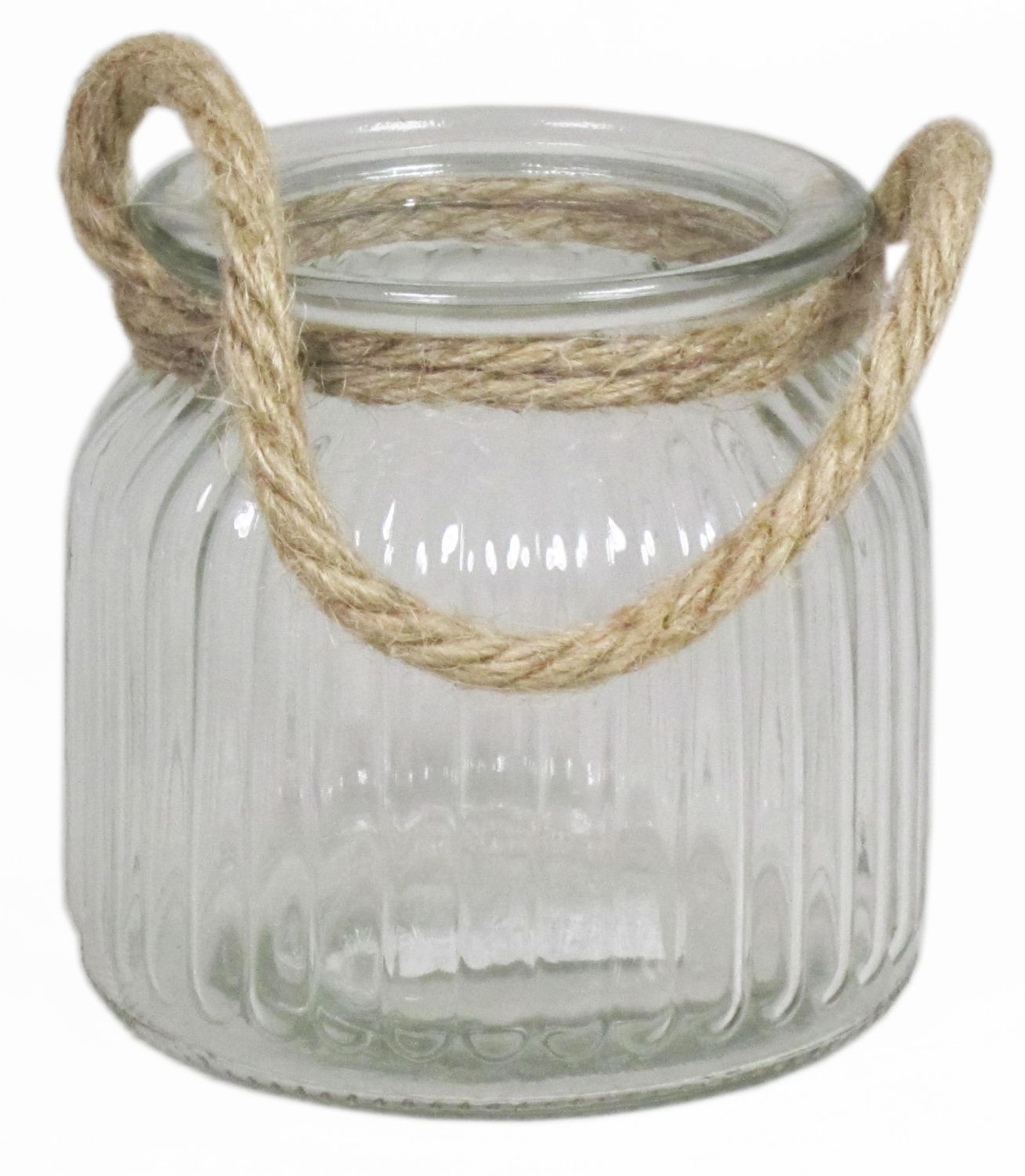Verre à bougie ADANNA avec anse, rayures verticales, transparent, 10,5cm, Ø11cm