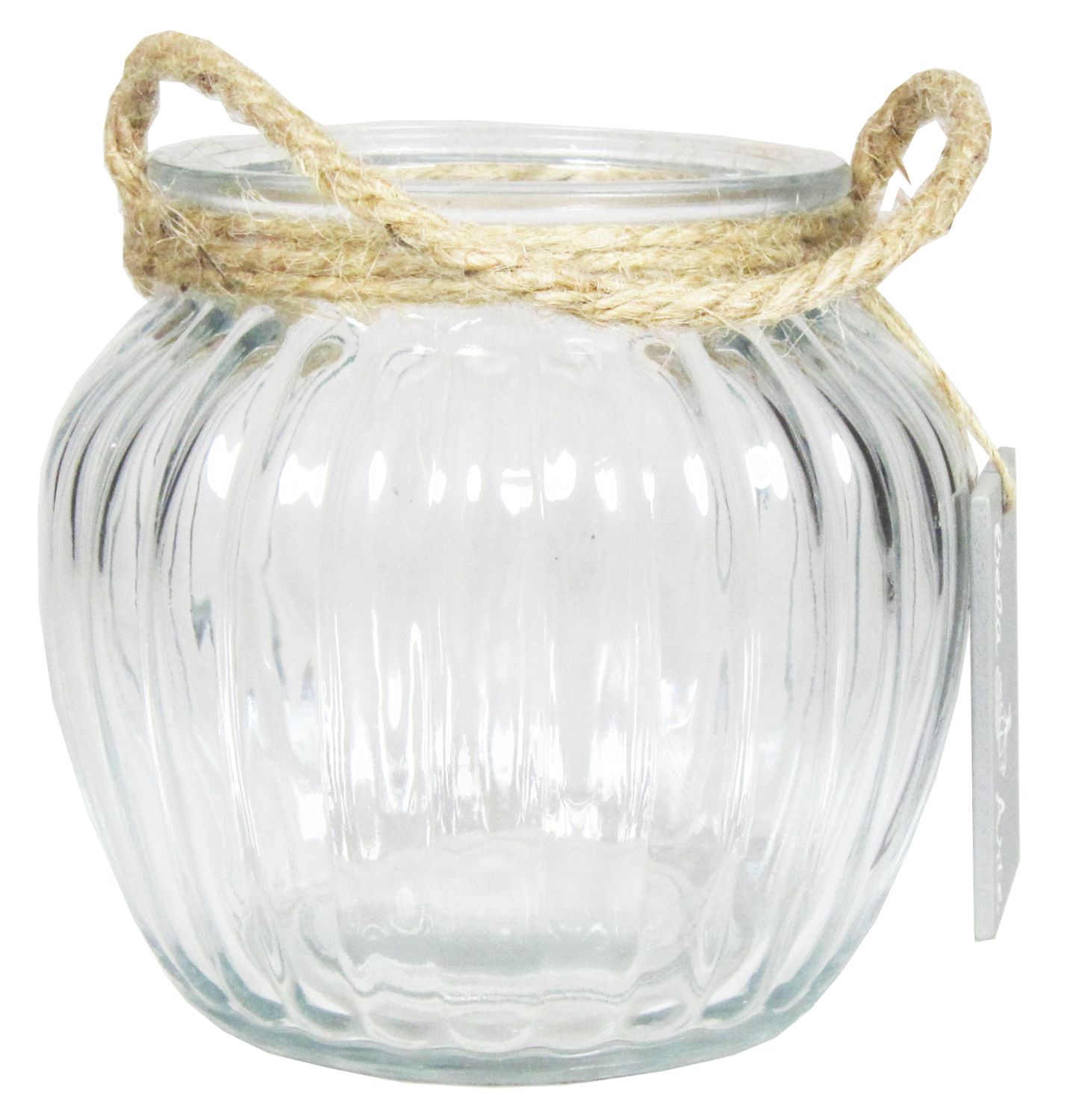 Verre à bougie AKILI avec anse, rayures verticales, transparent, 13,5cm, Ø15cm