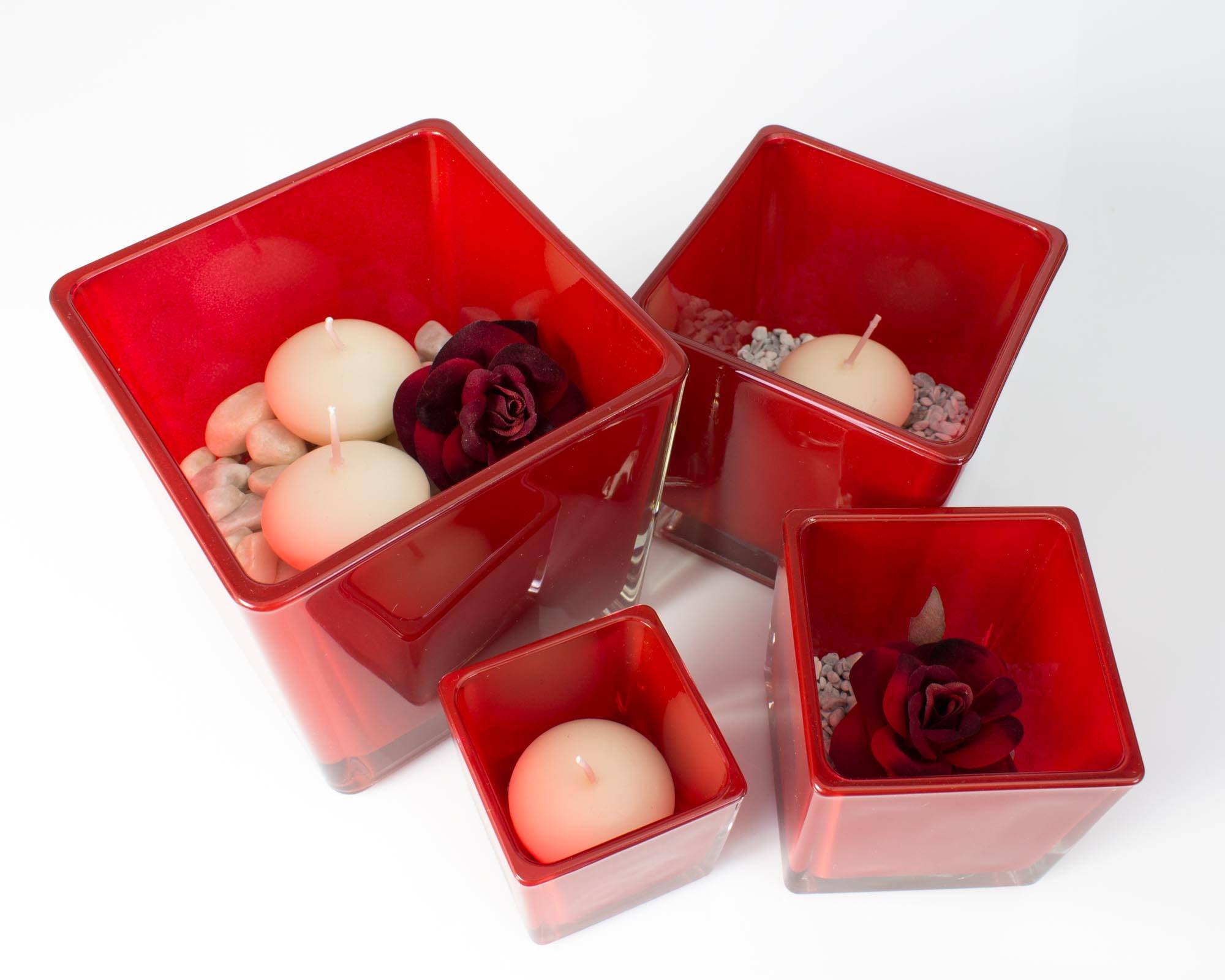 Verre à bougie KIM EARTH, rouge, 8x8x8cm