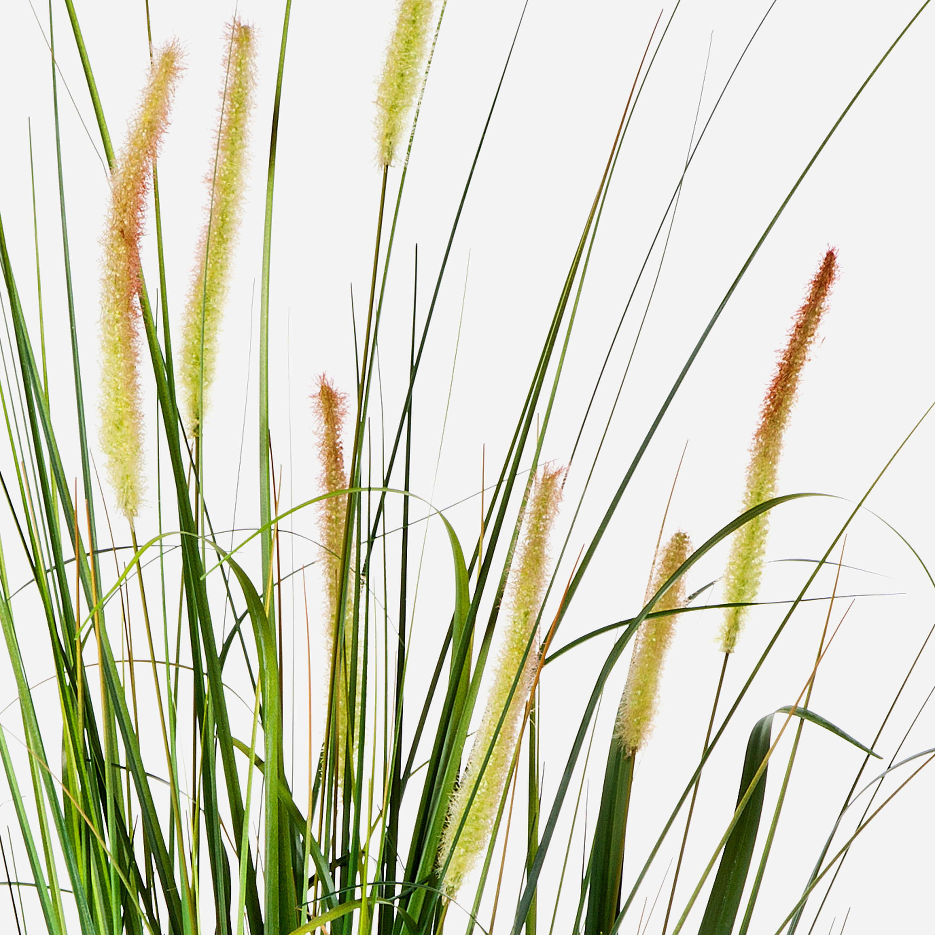 - Pourvu de beaucoup de brins d'herbe en matière synthétique naturellement veinés et de tailles différentes avec quelques panicules filigranes en fibre textile pour un aspect très réaliste